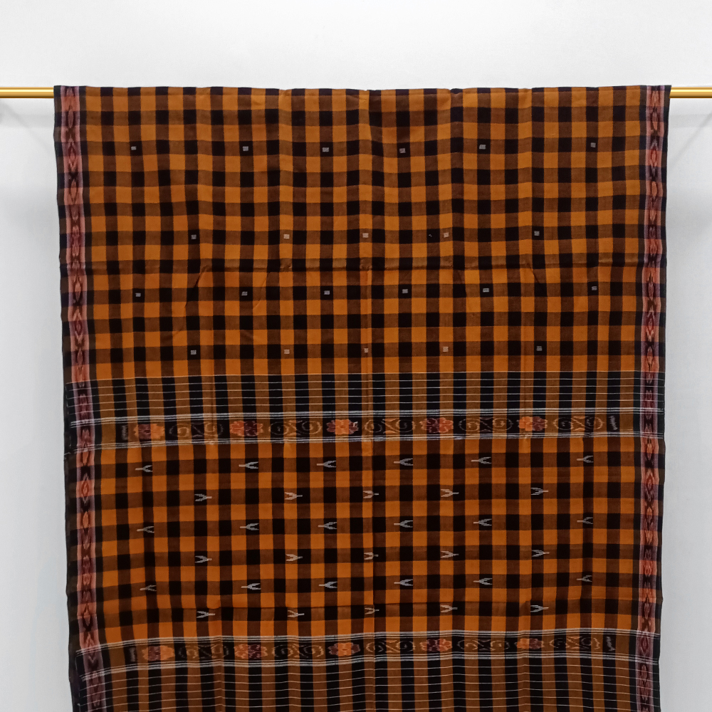 Badabag is a traditional Cotton saree produced from Odisha. This Saree Yellow in Body Colour With Black Border & Pallu.