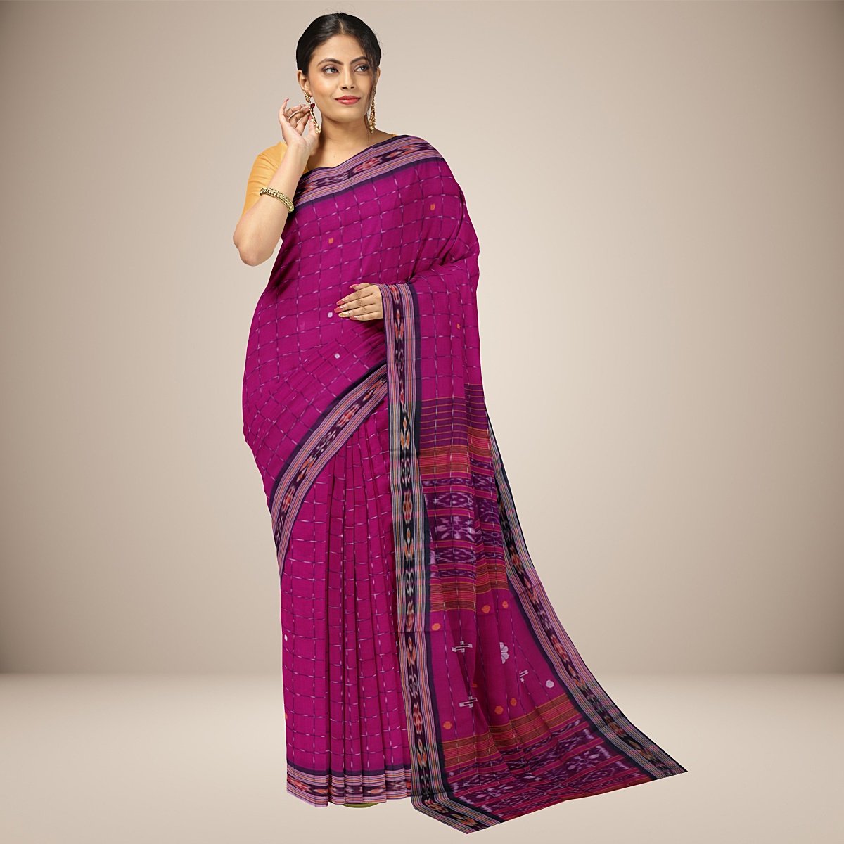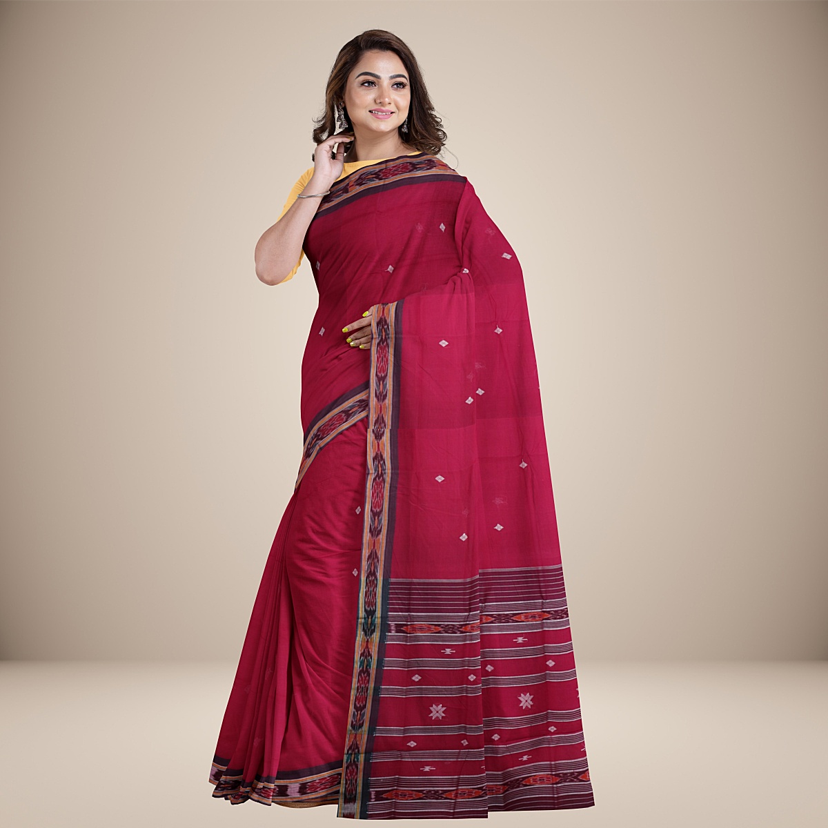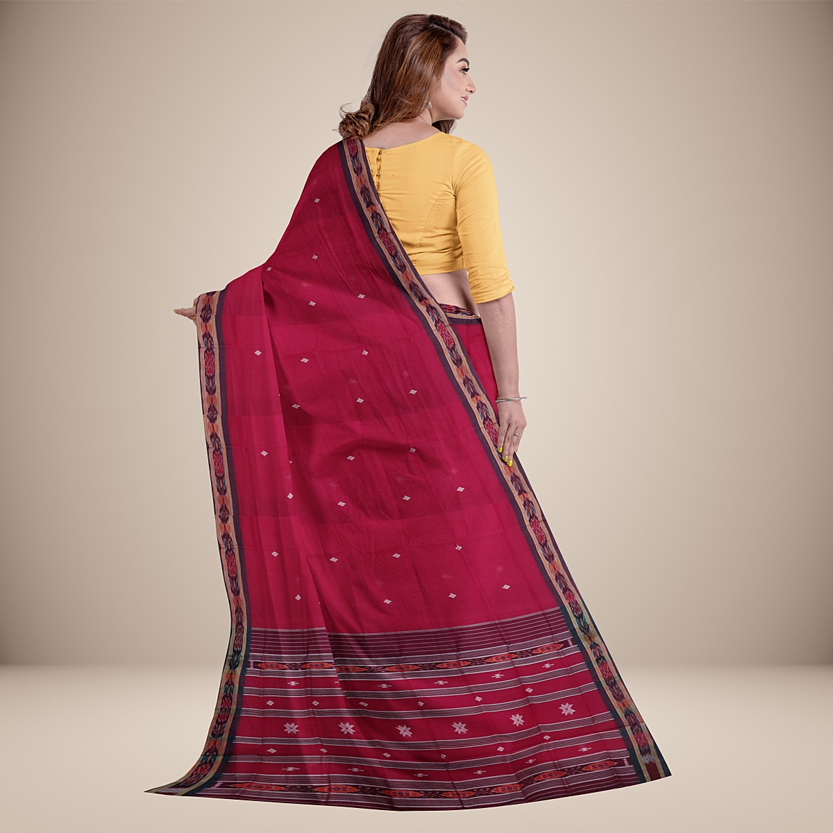 Badabag is a traditional Cotton saree produced from Odisha. This Saree Yellow in Body Colour With Black Border & Pallu.