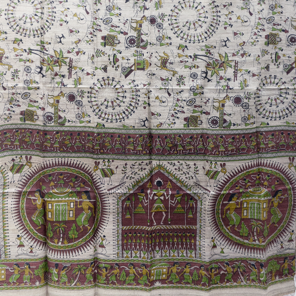 Beige and Magenta Pink Tribal Tussar Silk Dupatta