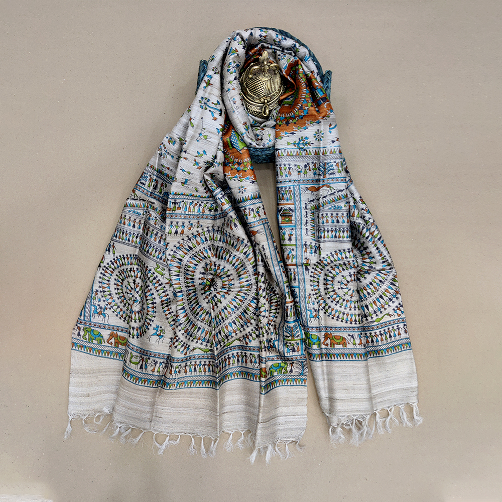 These lovely Dupattas are made from the finest Tussar silk, also known as Kosa silk and come from a wide-winged moth. Its dull gold texture serves as an ideal foundation for embroideries and print motifs that draw inspiration from nature.