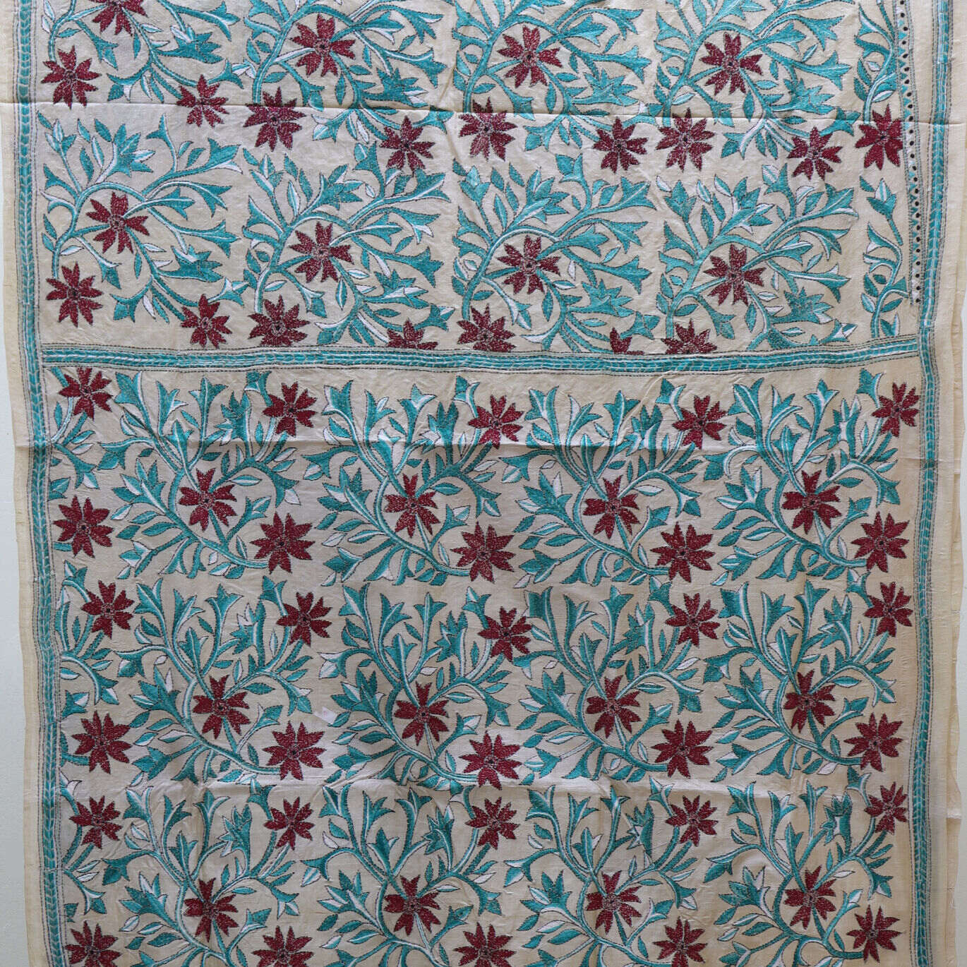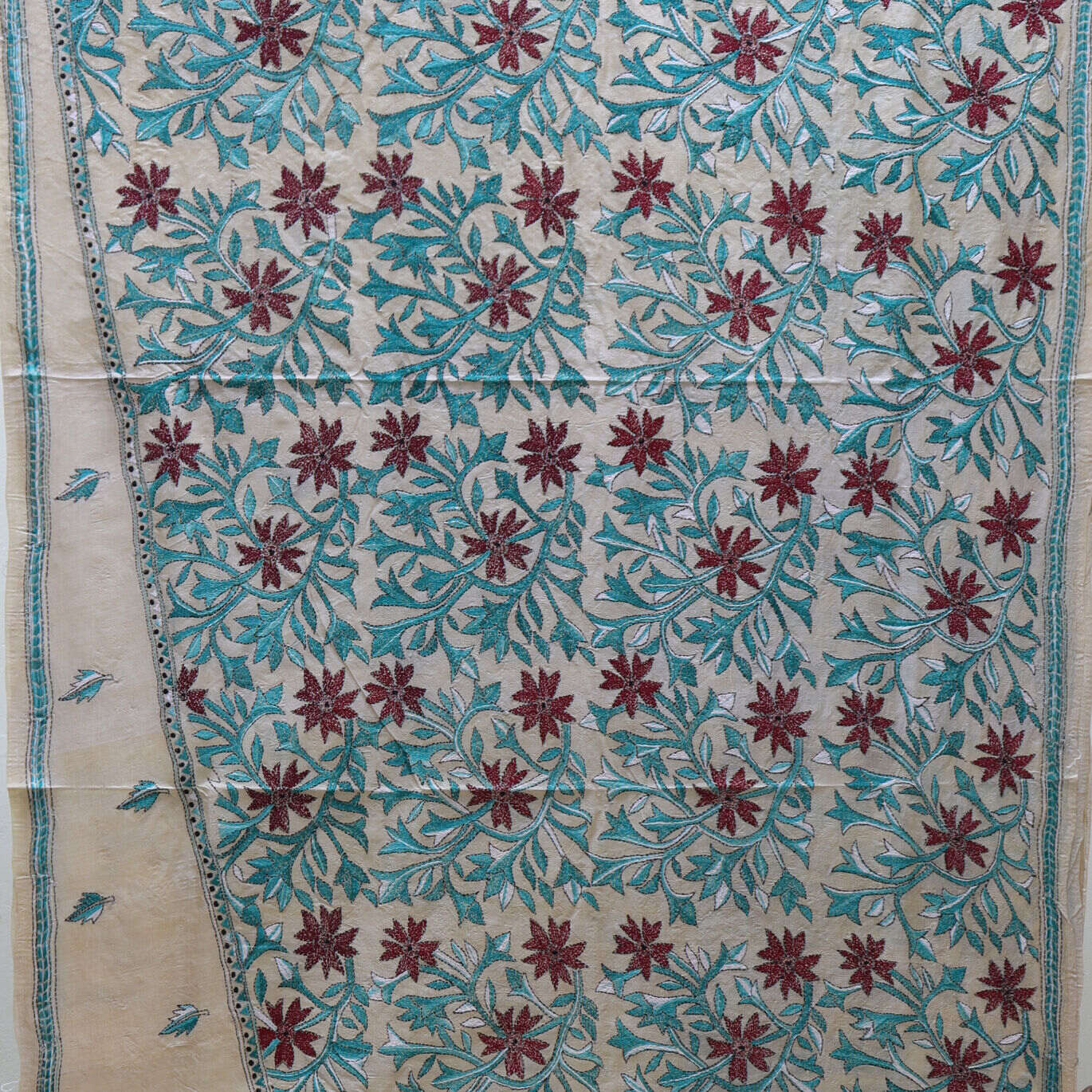 Black Shadows Floral Kantha Stitch Tussar Silk Saree
