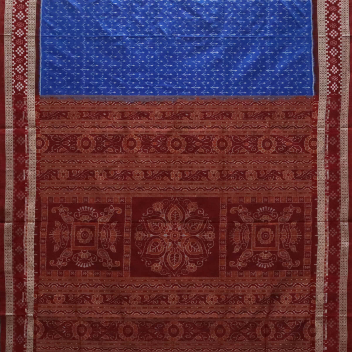 Blue Floral Motif body With Pasapali Border Sambalpuri Silk Saree