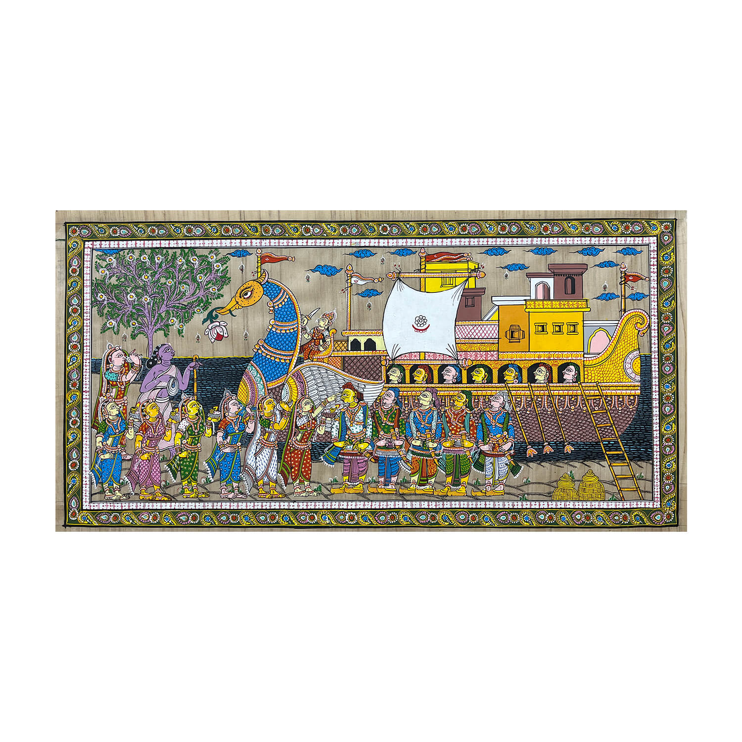 These are exotic ancient painting on tussar (silk) which is a natural fabric or on hand made canvas (Patta). As a religion art form it evolved from the temple rituals, more specifically from the temple of Jagannath at Puri and else where in Orissa. These paintings portray a large variety of themes, from religious and mythical stories to exotic and raga (musical) narratives.