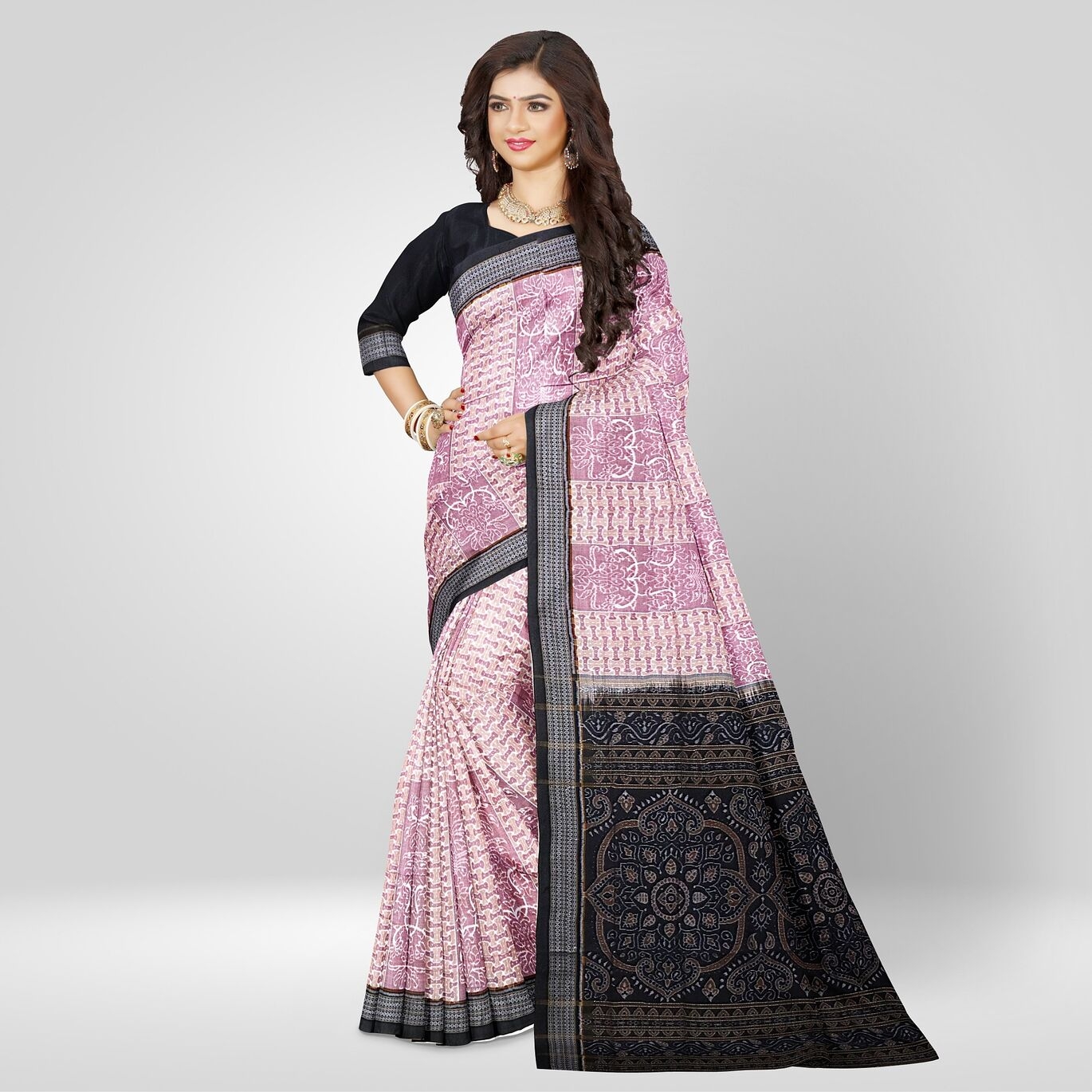 Charleston Black Tribal Design Rudrakhya Border Sambalpuri Cotton Saree