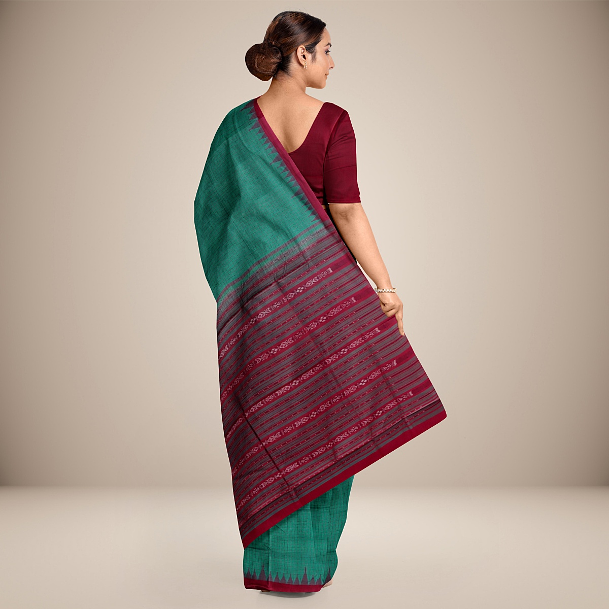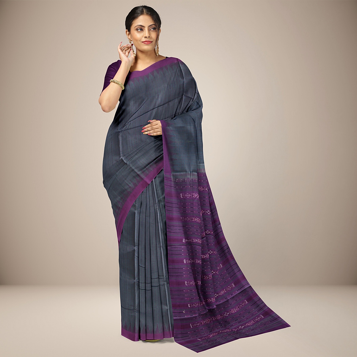 Sambalpuri saree is a traditional handwoven ikat or sari wherein the warp and the weft are tie-dyed before weaving. This particular gorgeous Sambalpuri cotton saree comes with a blouse piece..
