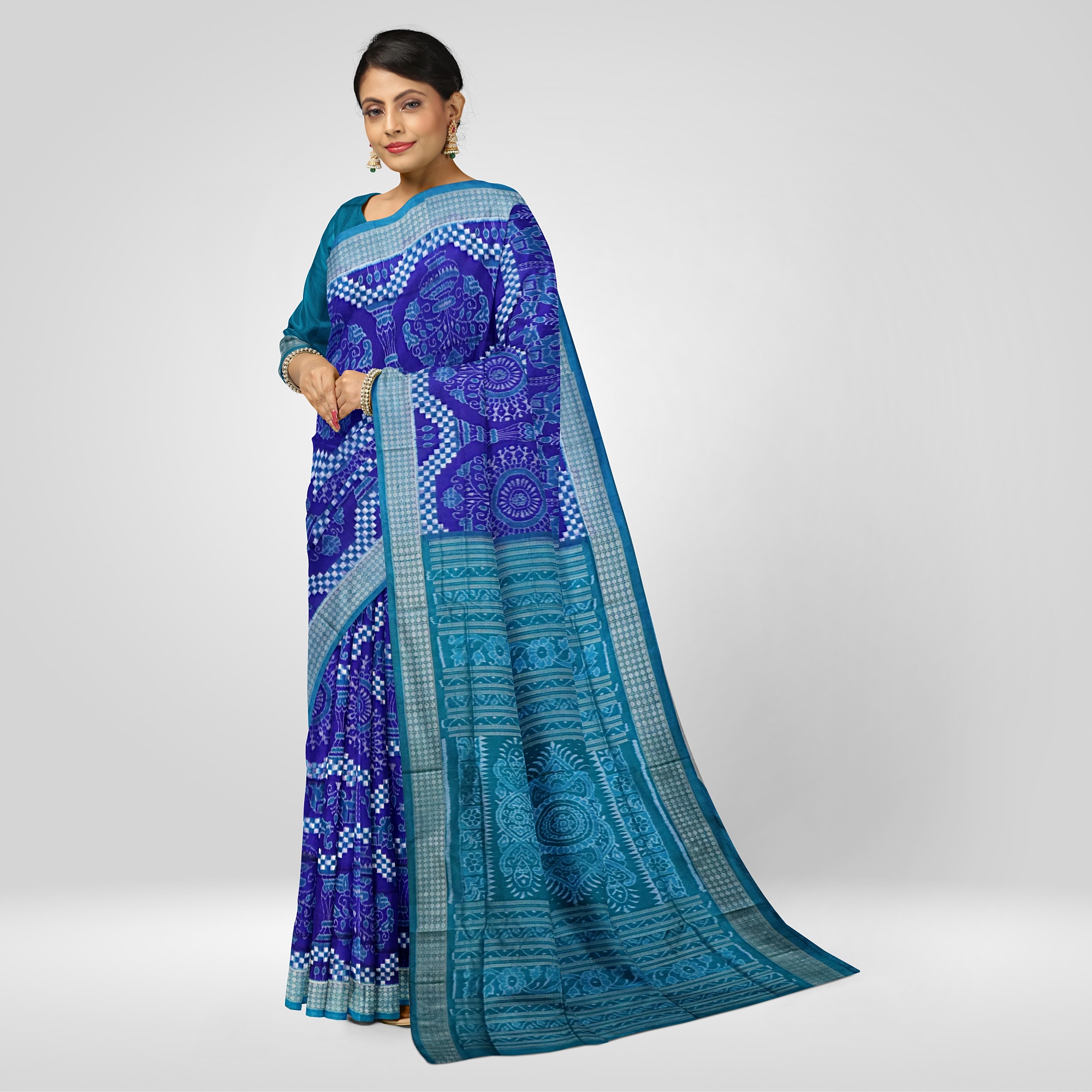 Cosmic Cobalt Tribal Motif Sambalpuri Silk Saree
