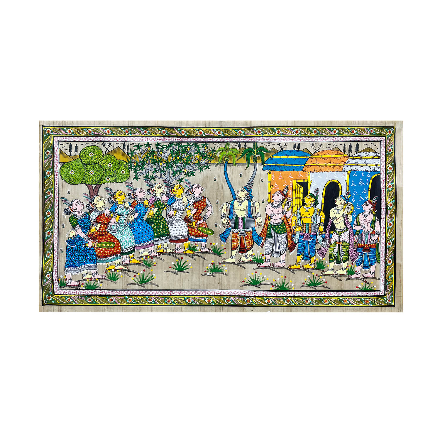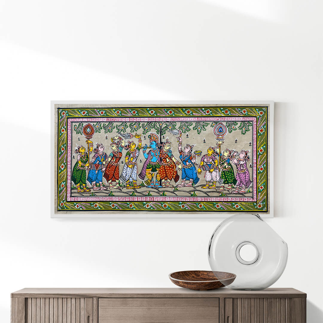 These are exotic ancient painting on tussar (silk) which is a natural fabric or on hand made canvas (Patta). As a religion art form it evolved from the temple rituals, more specifically from the temple of Jagannath at Puri and else where in Orissa. These paintings portray a large variety of themes, from religious and mythical stories to exotic and raga (musical) narratives.