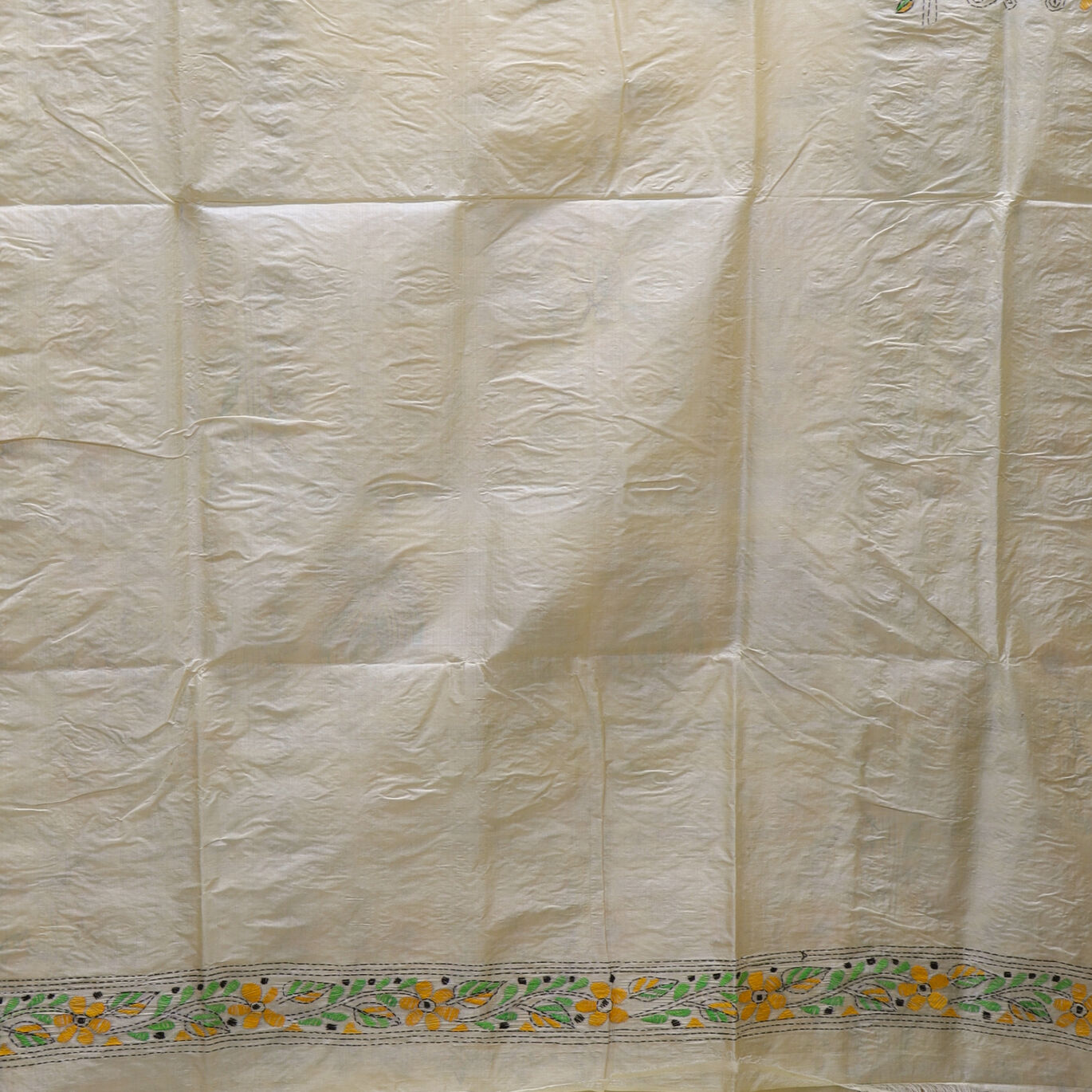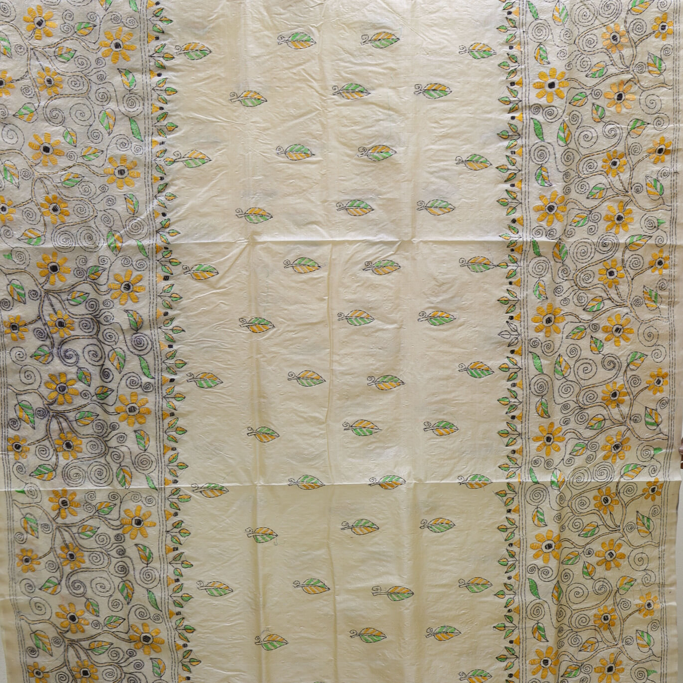 Dark Vanilla Kantha Stitch Tussar Silk Saree