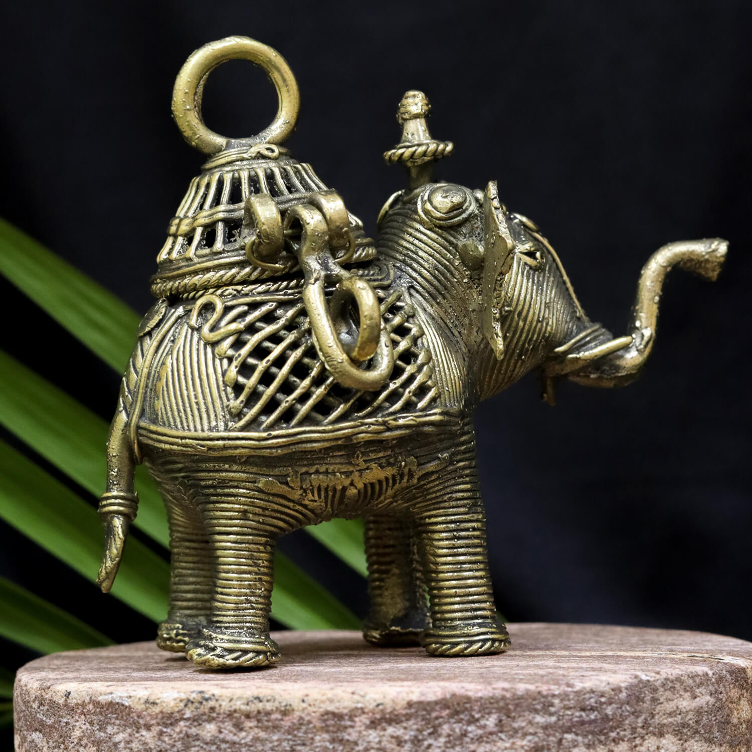 An elegant and unique curio with a raw, rustic appeal to enhance your decor. Dhokra is a beautiful, ancient craft and amongst the oldest traditional techniques of metal casting in India, practiced for over 4,000 years. The lost wax technique, cire perdue is the medium of metalworkers in Madhya Pradesh, Chhattisgarh, Odisha and West Bengal. This craft dates back to pre-historic times of the Harappa and Mohenjodaro Civilizations. Entirely handcrafted, the unique 13 stage process of Dhokra/ Bell metal making is an outcome of the original craft instinct handed down through the centuries. Dhokra/ Bell metal is an alloy of brass, nickel and zinc that gives an antique effect to the castings.