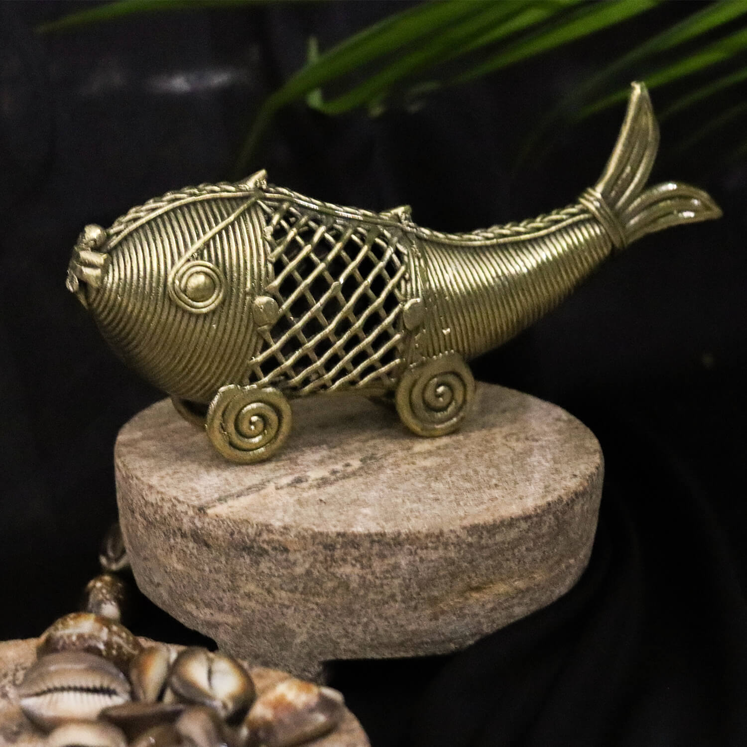 An elegant and unique curio with a raw, rustic appeal to enhance your decor. Dhokra is a beautiful, ancient craft and amongst the oldest traditional techniques of metal casting in India, practiced for over 4,000 years. The lost wax technique, cire perdue is the medium of metalworkers in Madhya Pradesh, Chhattisgarh, Odisha and West Bengal. This craft dates back to pre-historic times of the Harappa and Mohenjodaro Civilizations. Entirely handcrafted, the unique 13 stage process of Dhokra/ Bell metal making is an outcome of the original craft instinct handed down through the centuries. Dhokra/ Bell metal is an alloy of brass, nickel and zinc that gives an antique effect to the castings.
