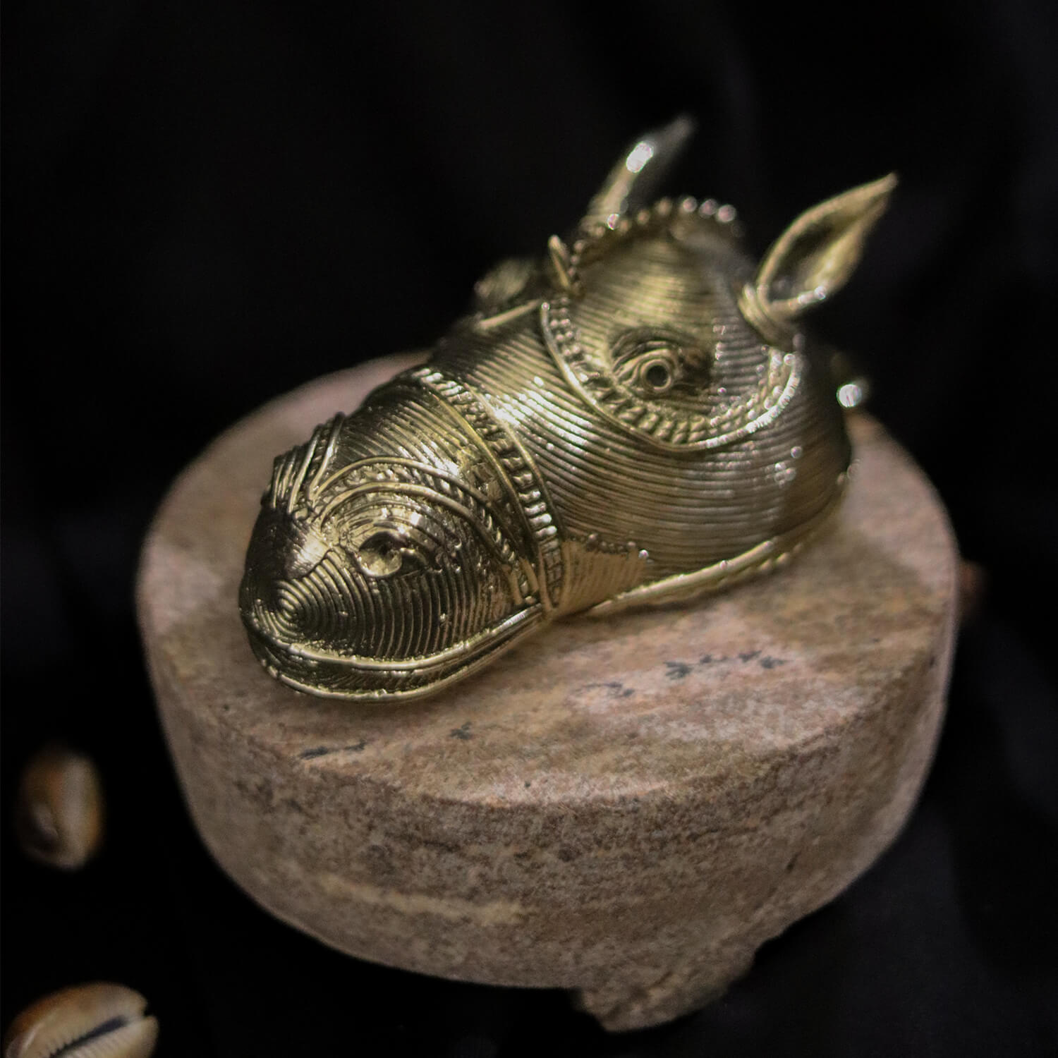 An elegant and unique curio with a raw, rustic appeal to enhance your decor. Dhokra is a beautiful, ancient craft and amongst the oldest traditional techniques of metal casting in India, practiced for over 4,000 years. The lost wax technique, cire perdue is the medium of metalworkers in Madhya Pradesh, Chhattisgarh, Odisha and West Bengal. This craft dates back to pre-historic times of the Harappa and Mohenjodaro Civilizations. Entirely handcrafted, the unique 13 stage process of Dhokra/ Bell metal making is an outcome of the original craft instinct handed down through the centuries. Dhokra/ Bell metal is an alloy of brass, nickel and zinc that gives an antique effect to the castings.