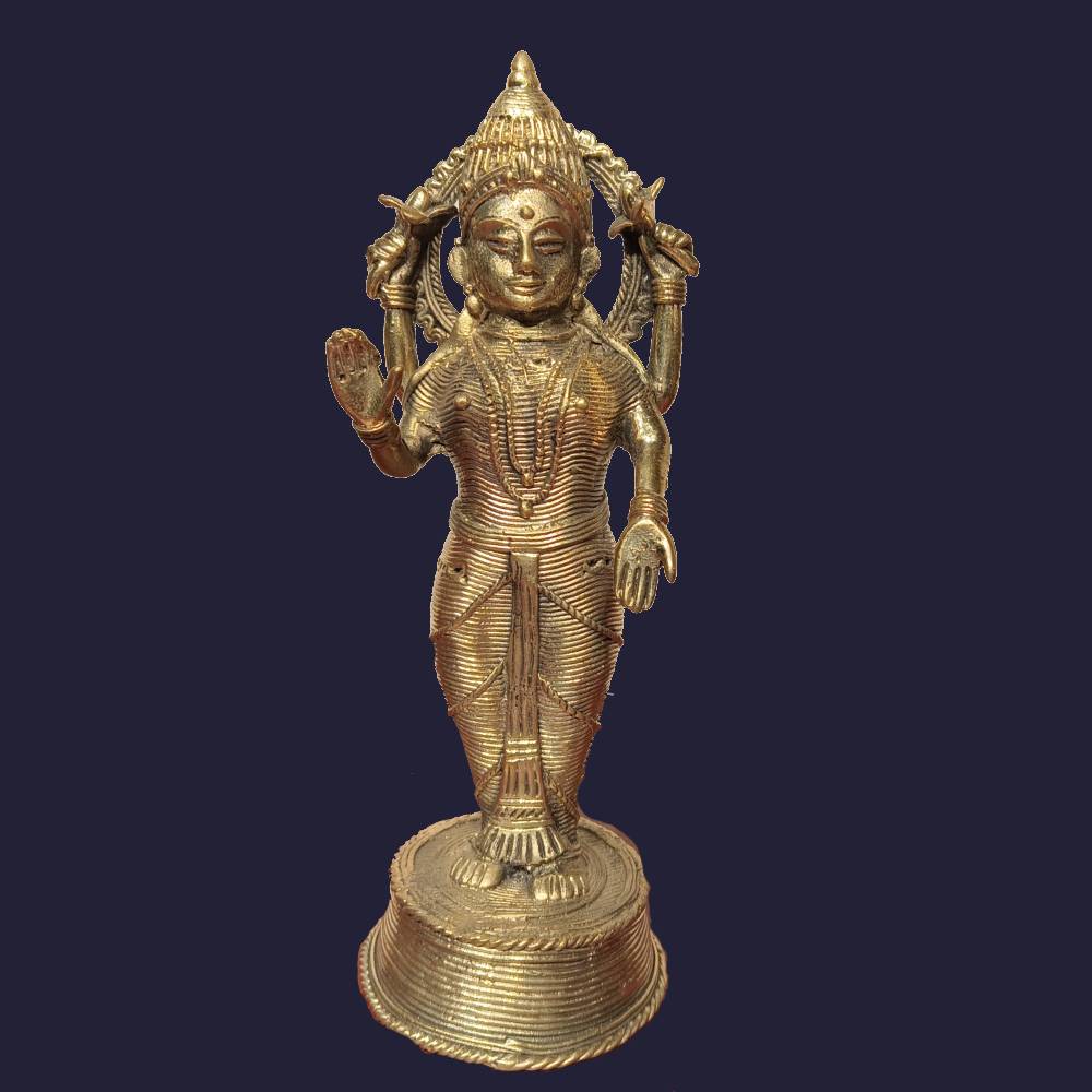 Dhokra Mask. An elegant and unique curio with a raw, rustic appeal to enhance your decor. Dhokra is a beautiful, ancient craft and amongst the oldest traditional techniques of metal casting in India, practiced for over 4,000 years. The lost wax technique, cire perdue is the medium of metalworkers in Madhya Pradesh, Chhattisgarh, Odisha and West Bengal. This craft dates back to pre-historic times of the Harappa and Mohenjodaro Civilizations. Entirely handcrafted, the unique 13 stage process of Dhokra/ Bell metal making is an outcome of the original craft instinct handed down through the centuries. Dhokra/ Bell metal is an alloy of brass, nickel and zinc that gives an antique effect to the castings.