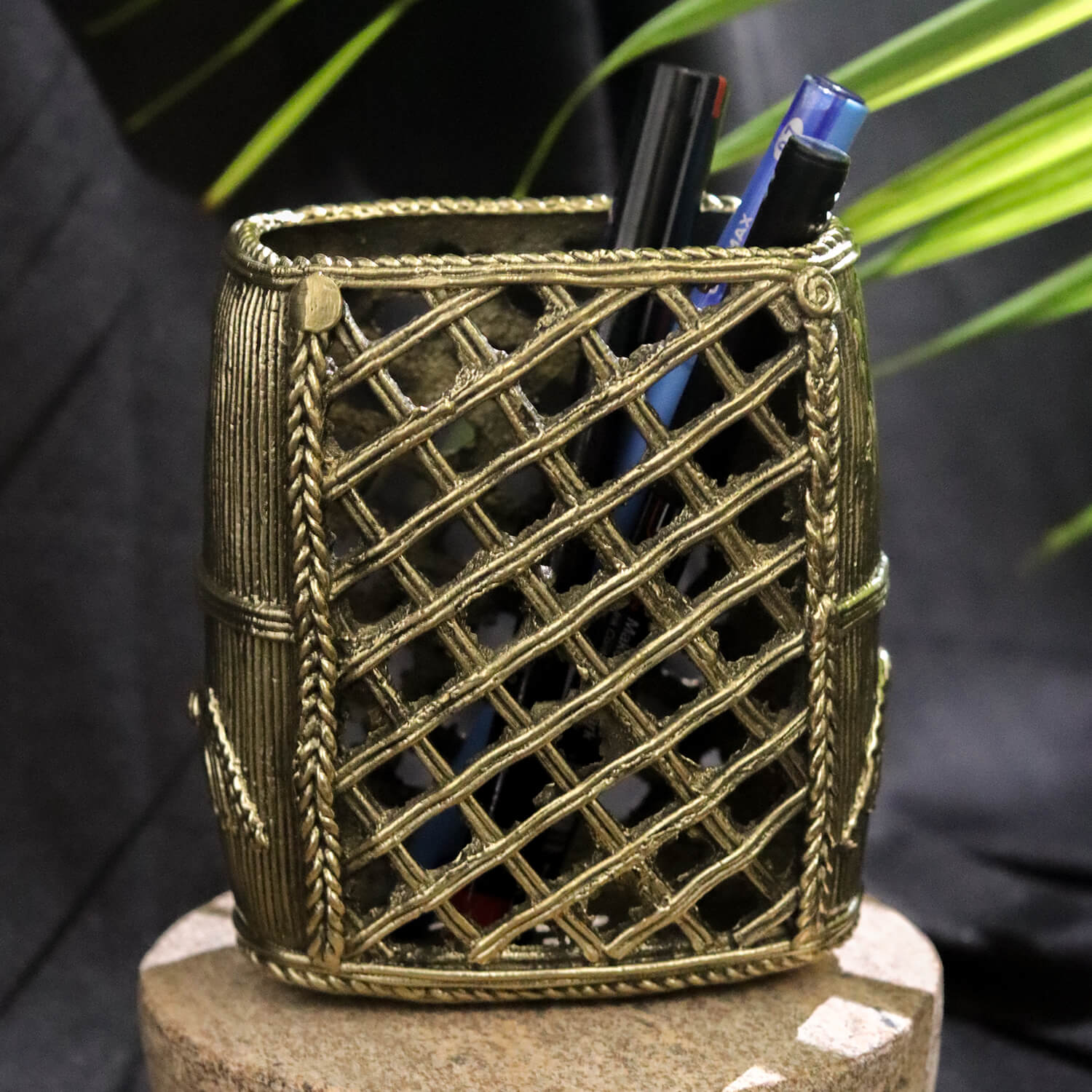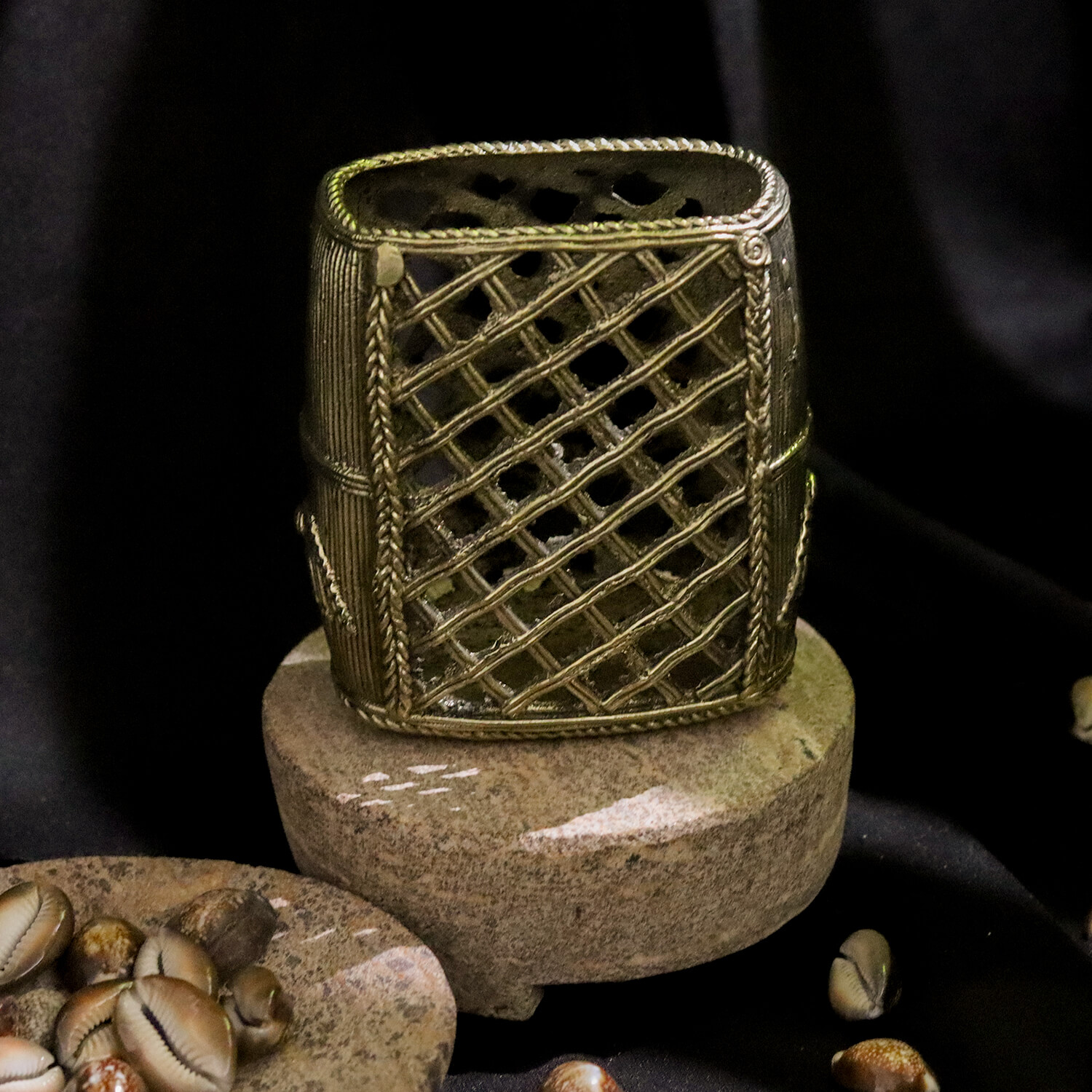 An elegant and unique curio with a raw, rustic appeal to enhance your decor. Dhokra is a beautiful, ancient craft and amongst the oldest traditional techniques of metal casting in India, practiced for over 4,000 years. The lost wax technique, cire perdue is the medium of metalworkers in Madhya Pradesh, Chhattisgarh, Odisha and West Bengal. This craft dates back to pre-historic times of the Harappa and Mohenjodaro Civilizations. Entirely handcrafted, the unique 13 stage process of Dhokra/ Bell metal making is an outcome of the original craft instinct handed down through the centuries. Dhokra/ Bell metal is an alloy of brass, nickel and zinc that gives an antique effect to the castings.