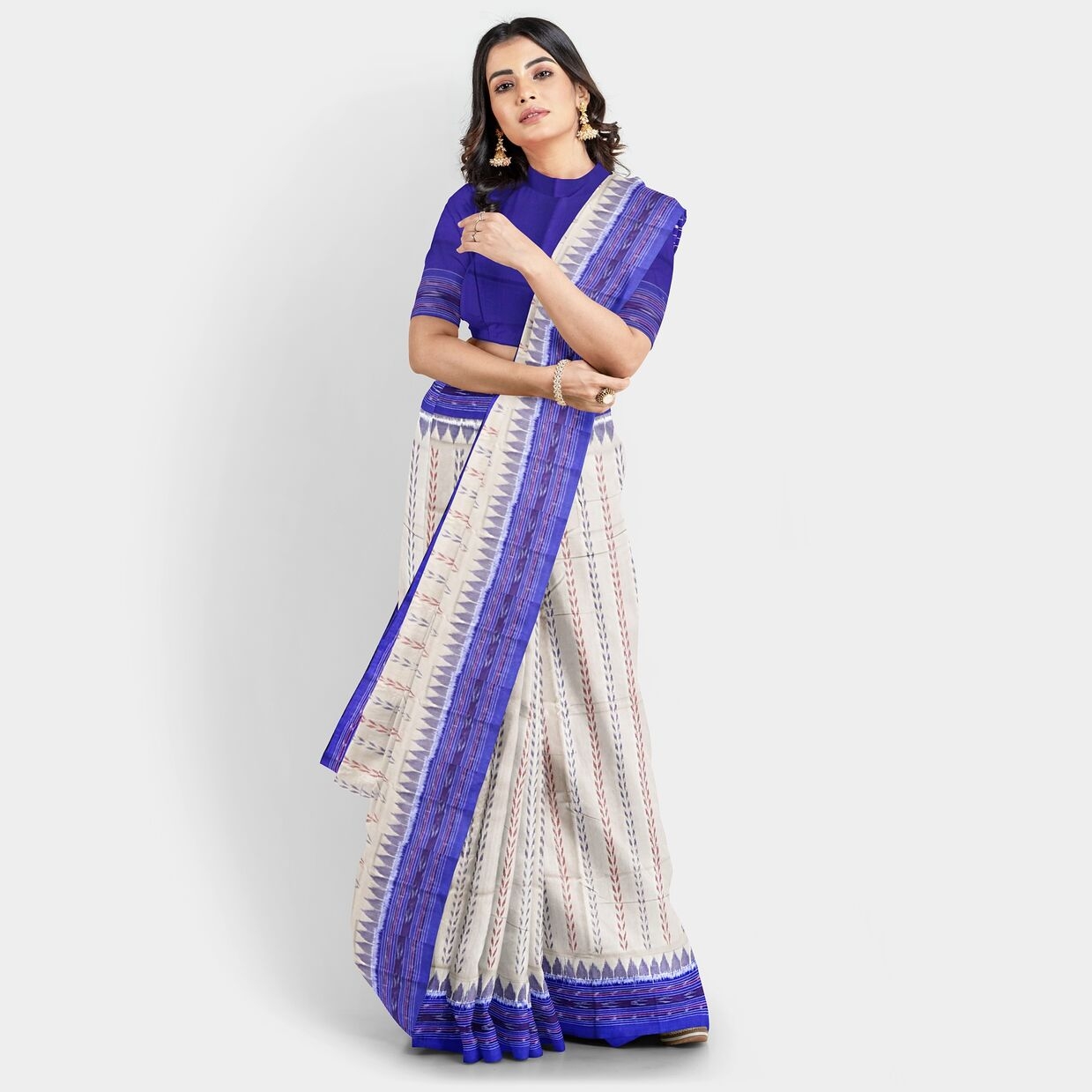Dodger Blue Temple Border Sambalpuri Silk Saree