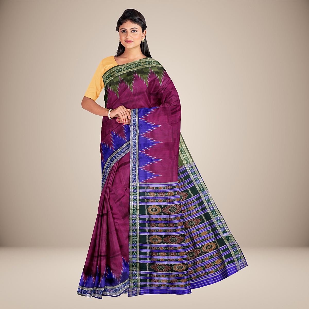 Nuapatna Khandua Silk Sarees: A Timeless Elegance. Handwoven with precision in the traditional Nuapatna style, these sarees exude grace and sophistication. Adorned with intricate motifs and vibrant colors, each piece tells a story of heritage and craftsmanship. Elevate your wardrobe with the timeless charm of Nuapatna Khandua silk sarees.
