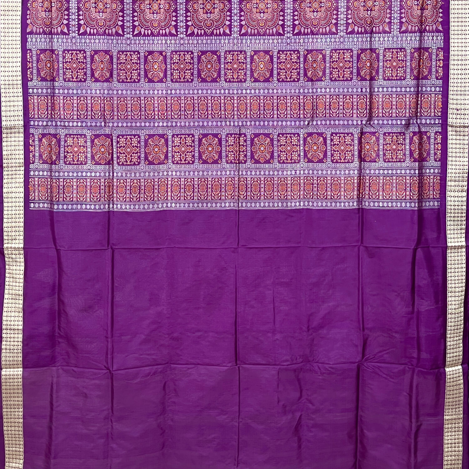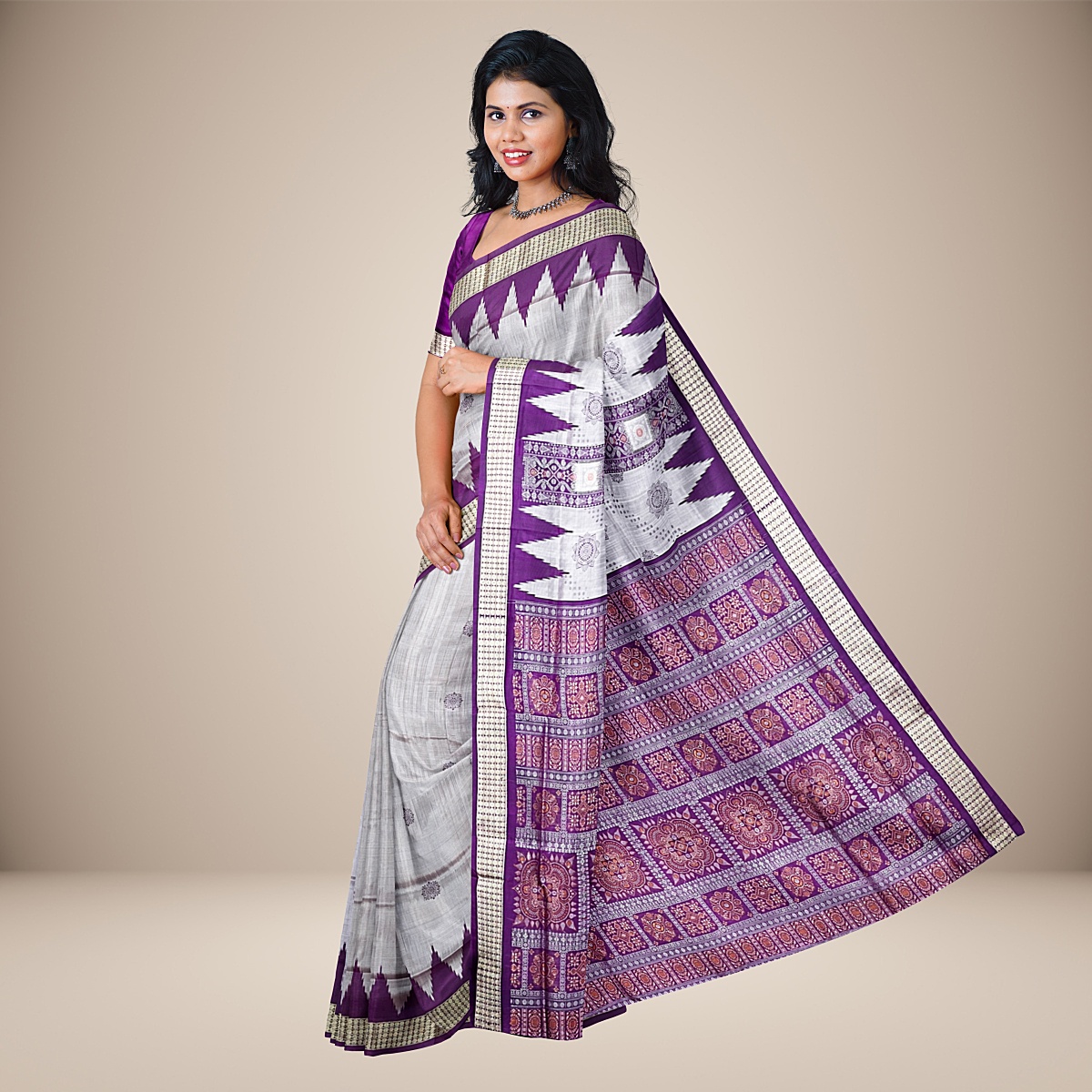 Floral Body Temple Border Bomkai Silk Saree