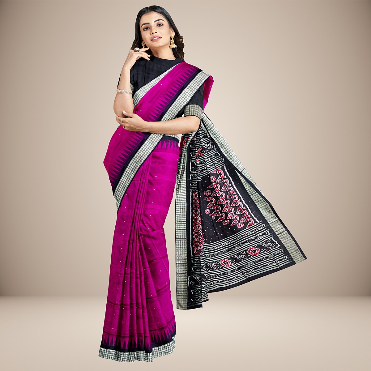 Bomkai Silk Saree with blouse piece. A perfect companion for a special occasion.