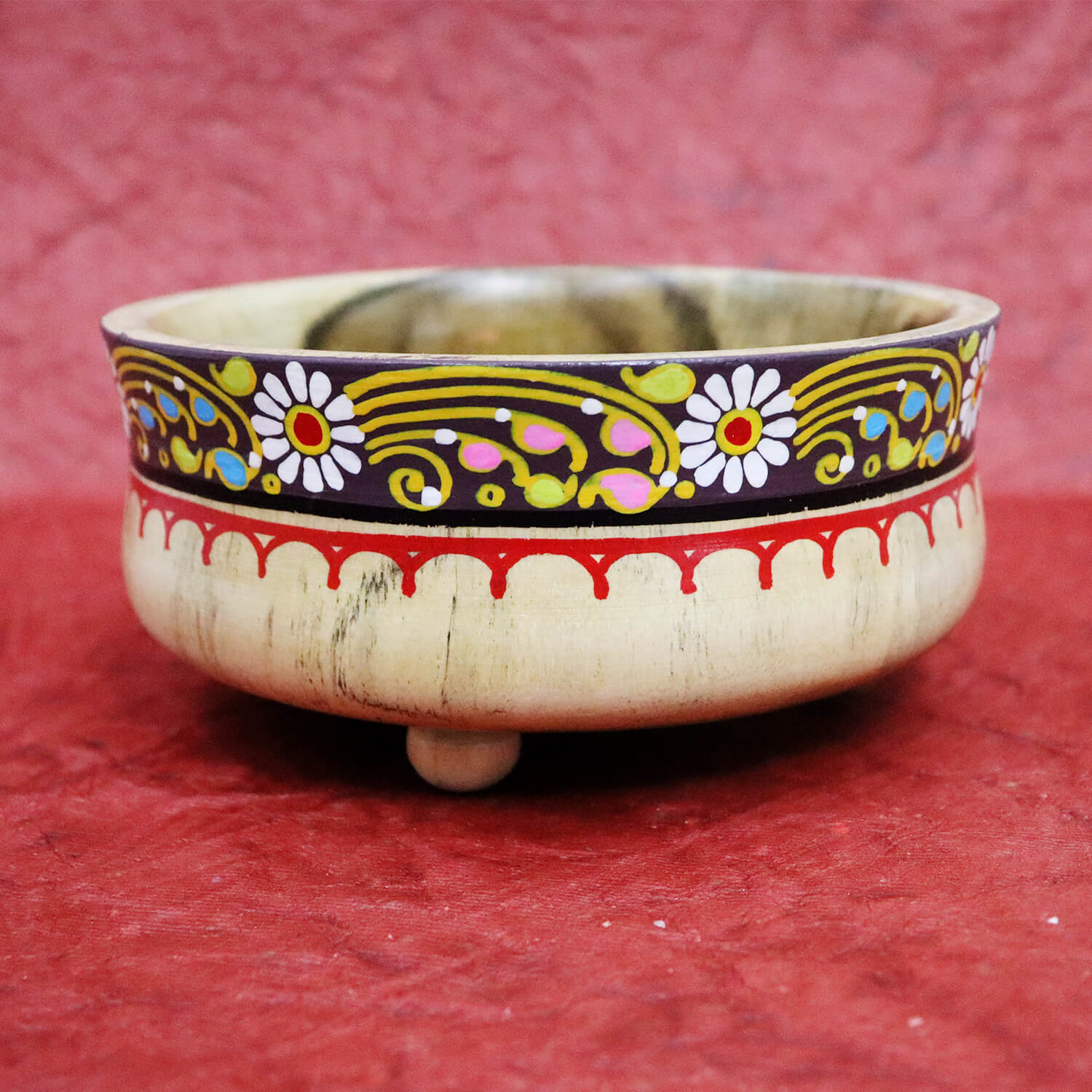 - Beautifully hand-painted Wooden Pattachitra Bowl.