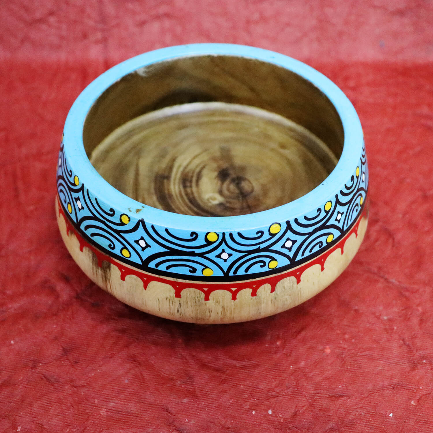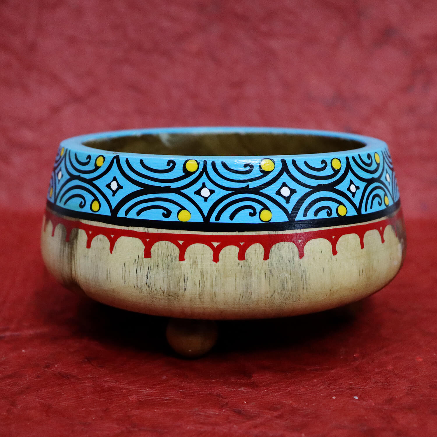 - Beautifully hand-painted Wooden Pattachitra Bowl.