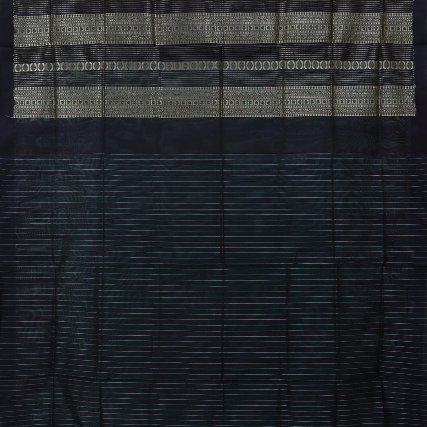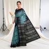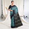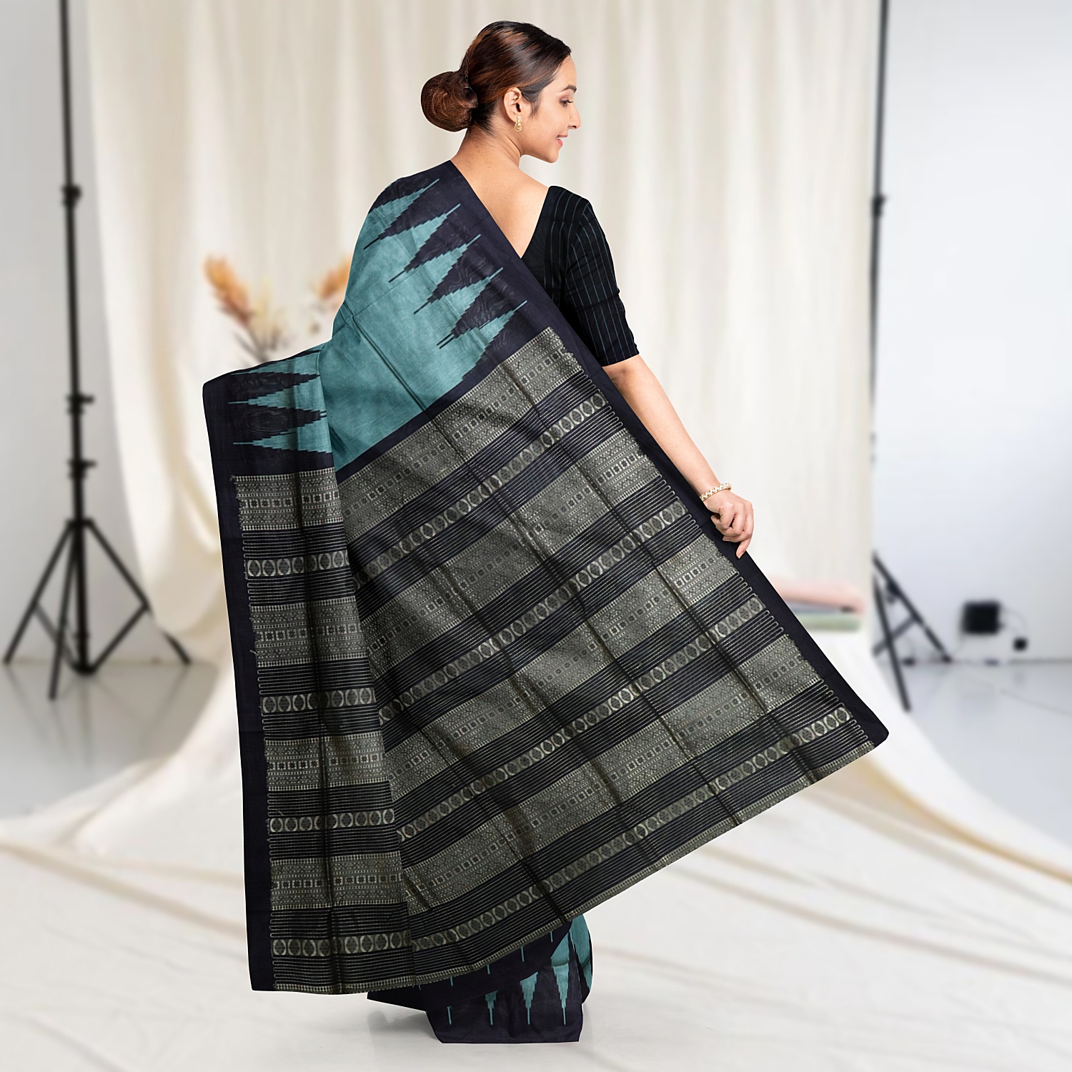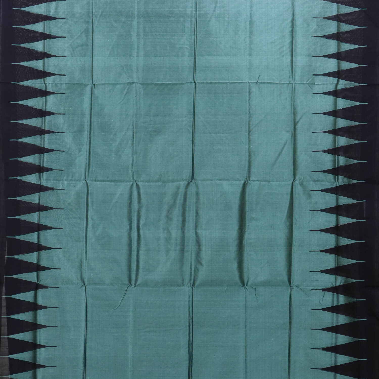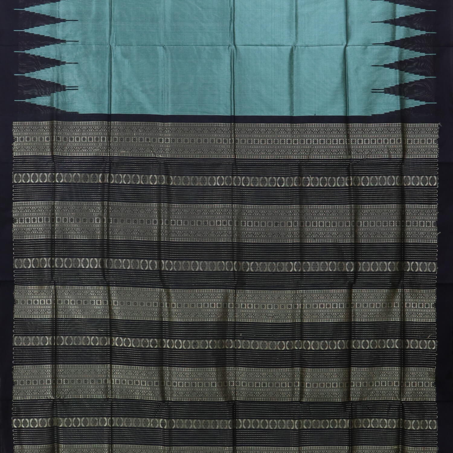Ice Blue Plain Body Temple border Bomkai silk saree