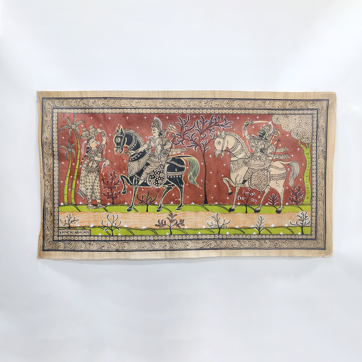 These are exotic ancient painting on tussar (silk) which is a natural fabric or on hand made canvas (Patta). As a religion art form it evolved from the temple rituals, more specifically from the temple of Jagannath at Puri and else where in Orissa. These paintings portray a large variety of themes, from religious and mythical stories to exotic and raga (musical) narratives.