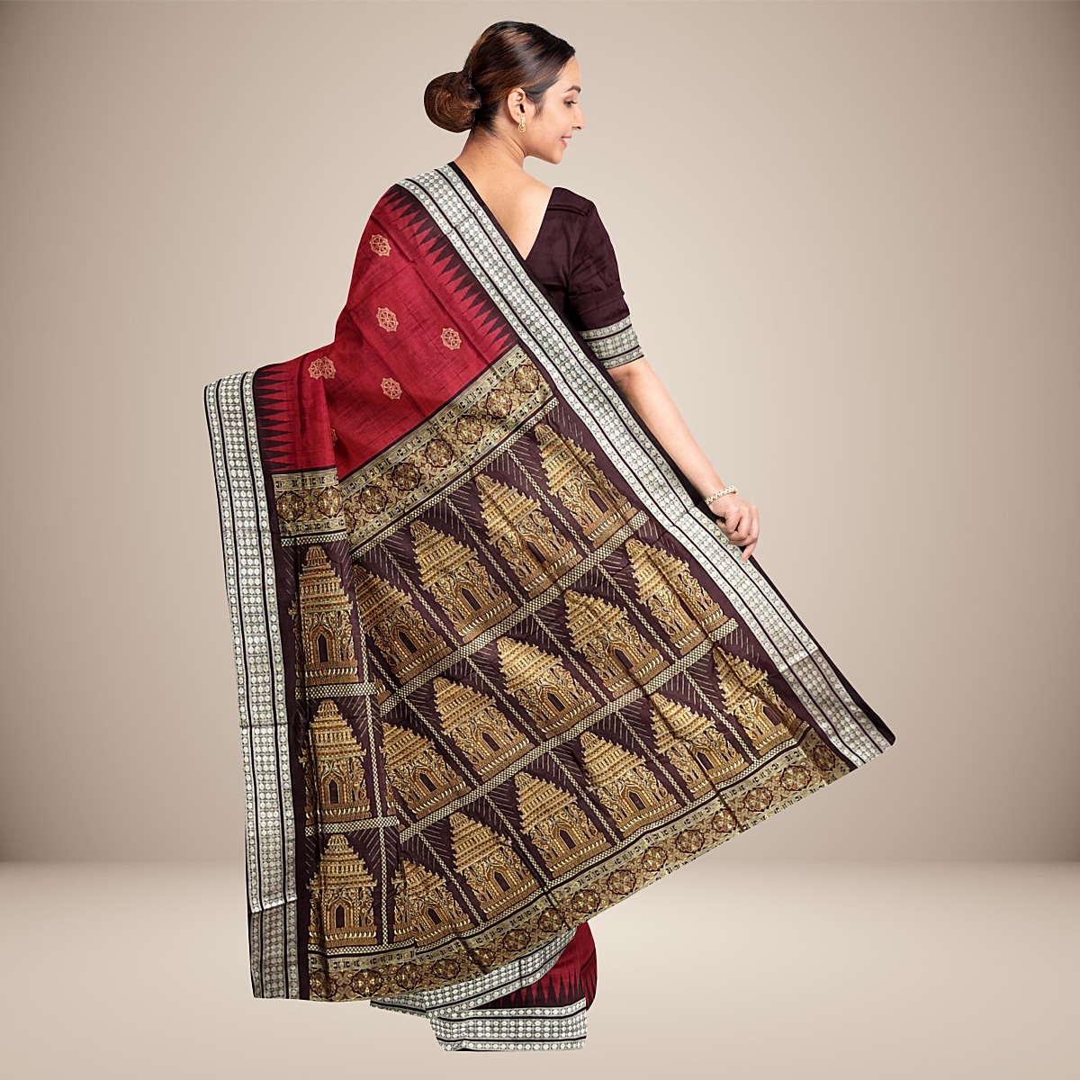 Konark Wheel Pattern Body Bomkai Silk Saree
