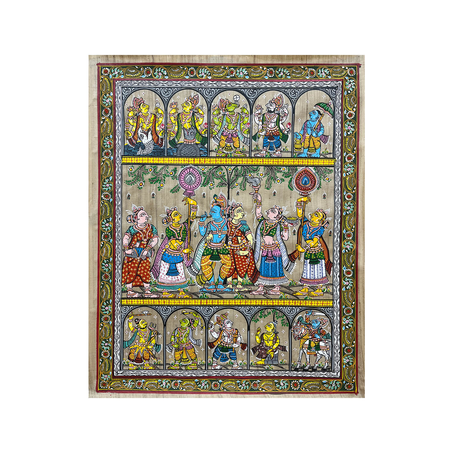 Krishna Rasaleela and Vishnu Dasavatara Patta Tussar Painting