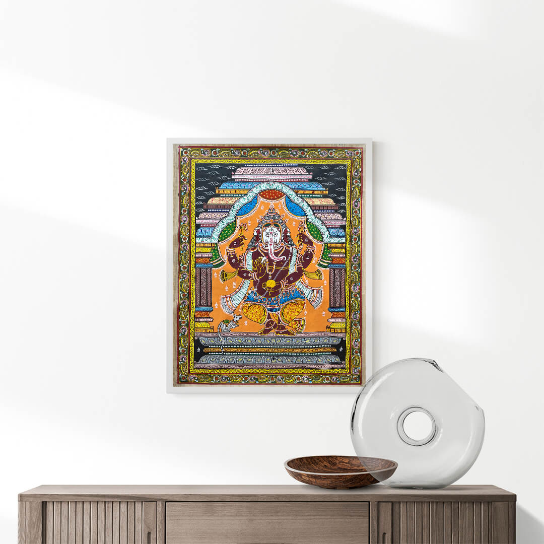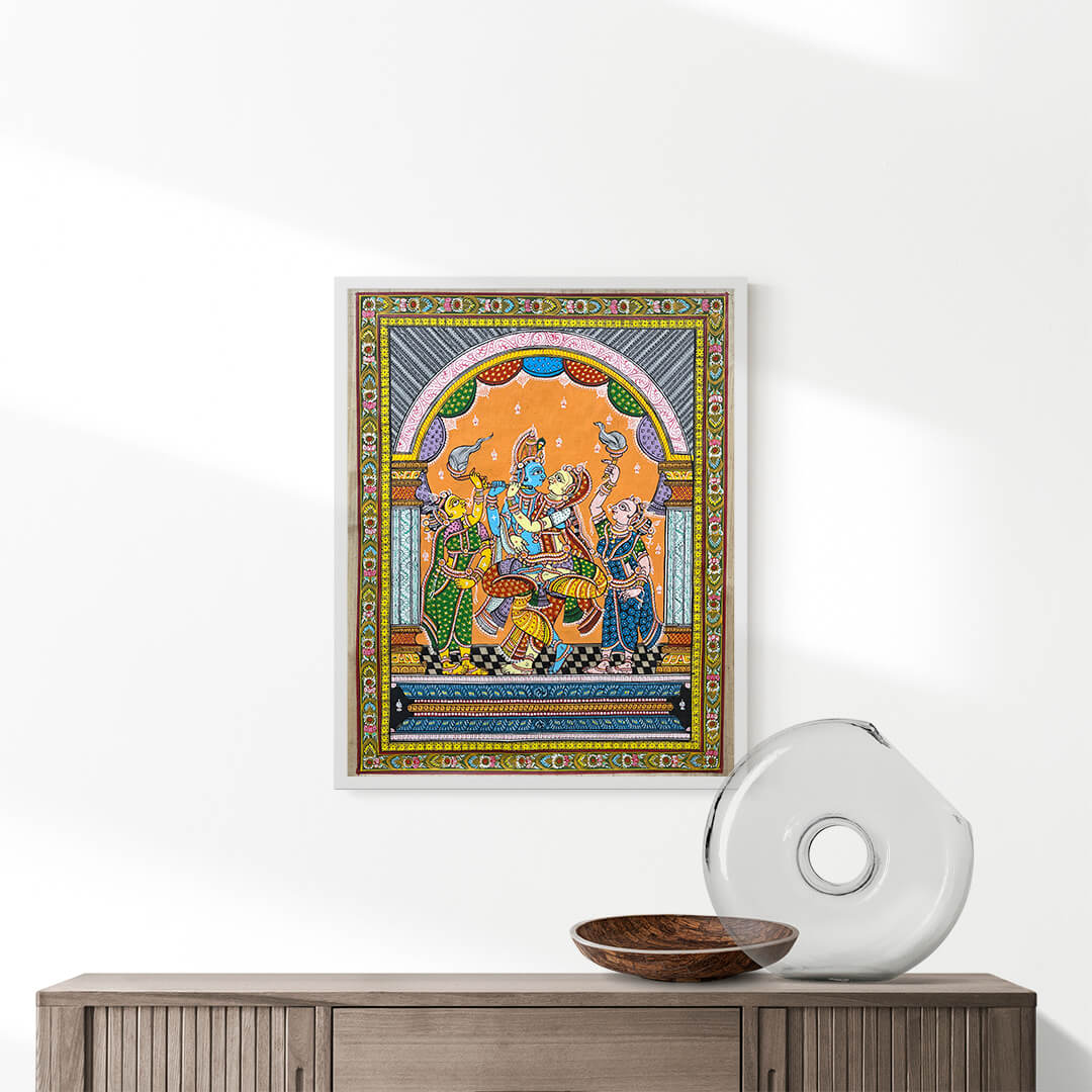 These are exotic ancient painting on tussar (silk) which is a natural fabric or on hand made canvas (Patta). As a religion art form it evolved from the temple rituals, more specifically from the temple of Jagannath at Puri and else where in Orissa. These paintings portray a large variety of themes, from religious and mythical stories to exotic and raga (musical) narratives.