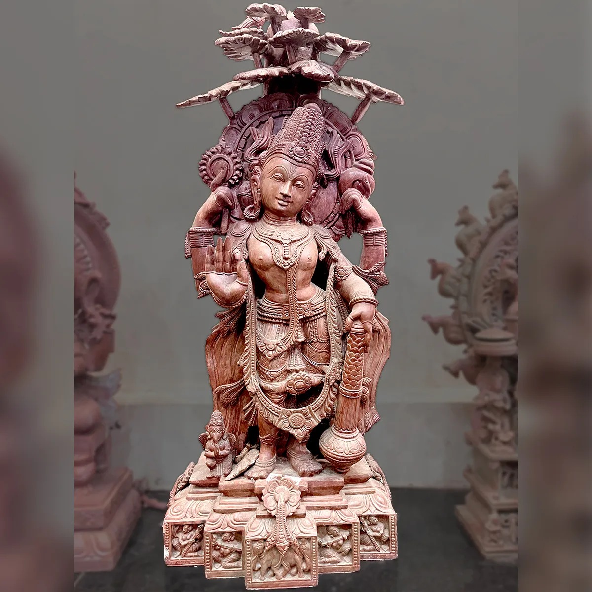 - Lord Vishnu Pink Stone Statue.