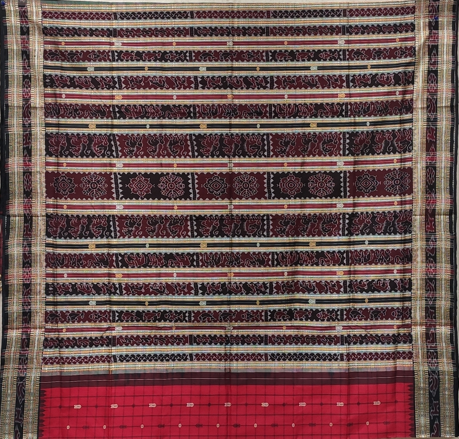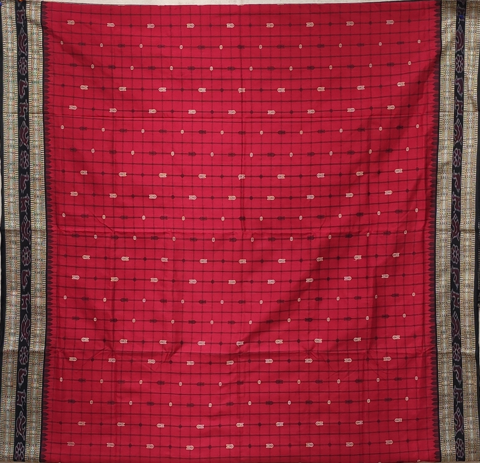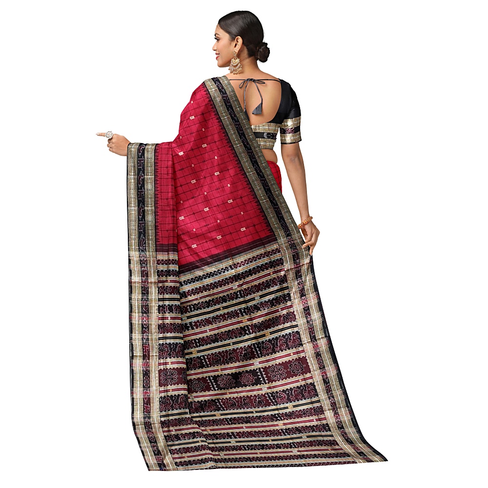 Machha Buti Sambalpuri Silk Saree Red and Black Colour