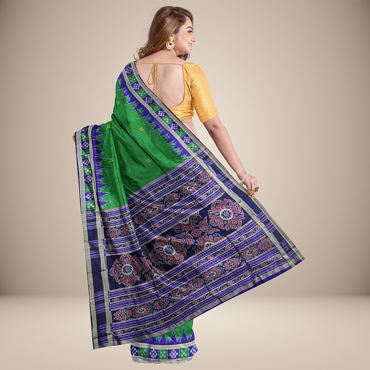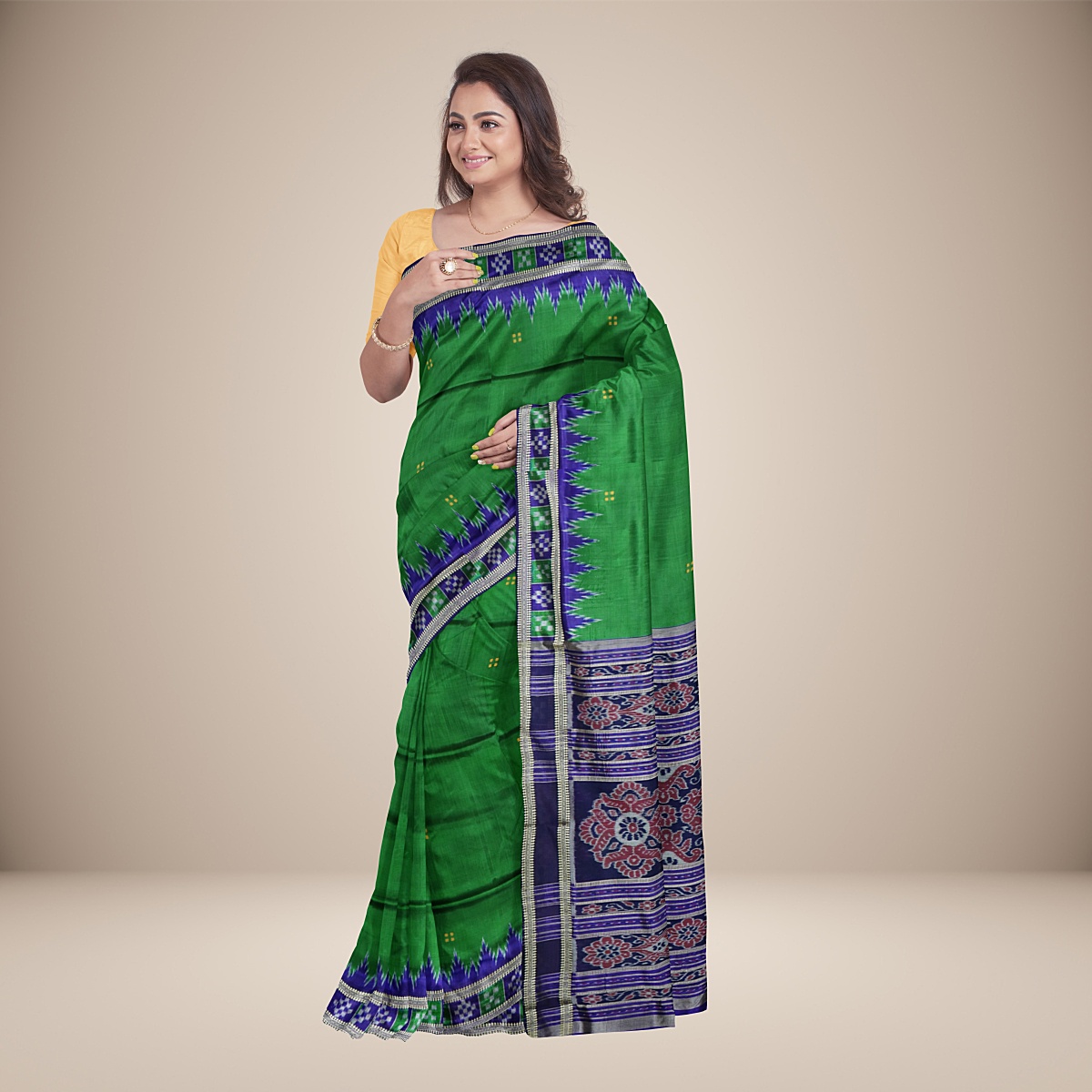 Mini Buti Triple Pasapali Temple Border Khandua Silk Saree