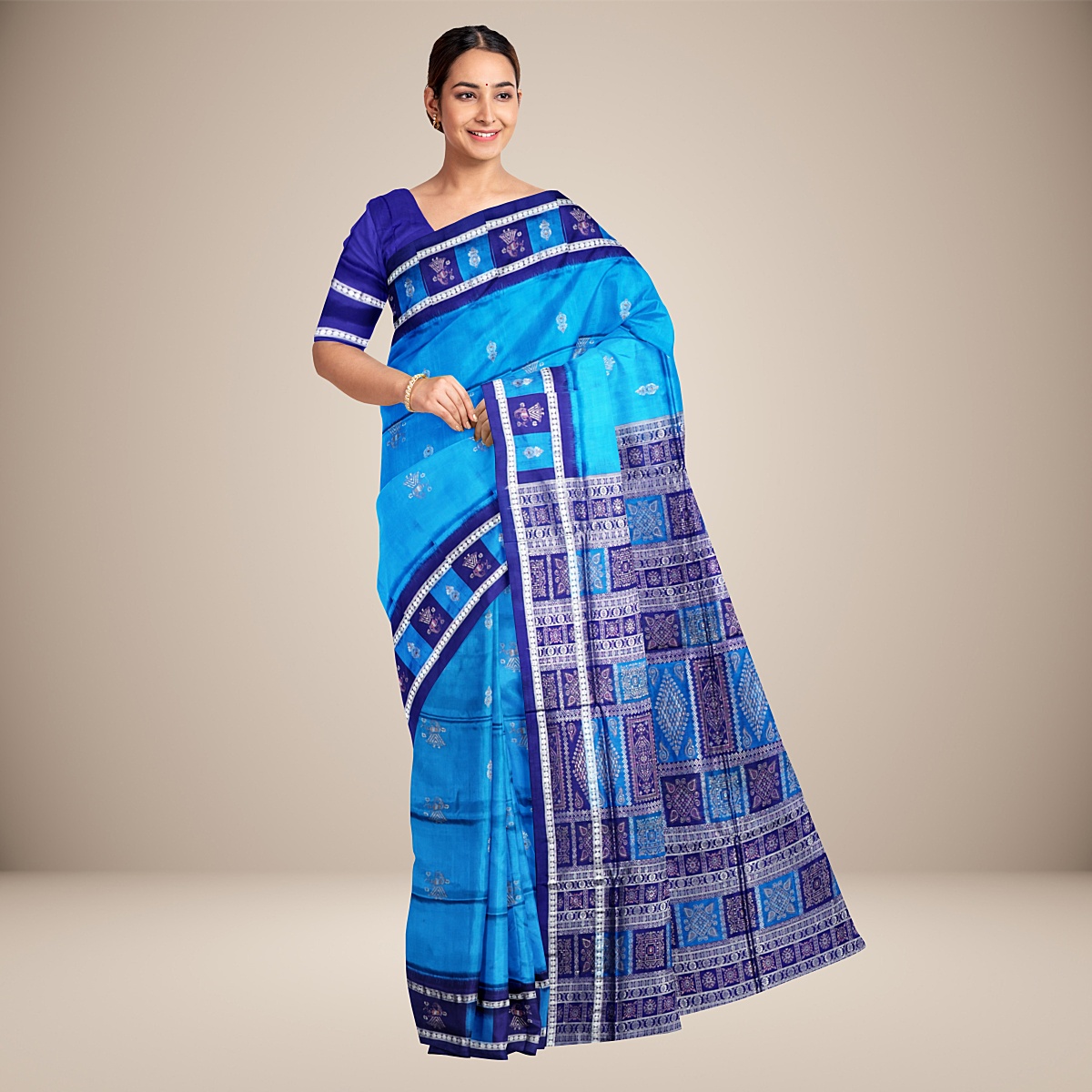 Bomkai saree is named after a small picturesque village in the Ganjam district called Bomkai. It is also known as the Sonepuri saree and is highly regarded for its exquisite woven fabric and artwork. Another feature that distinguishes Bomkai Sarees is the incorporation of mythological scenes and historical stories. It is also worth noting that Bomaki sarees feature the use of contrasting colours and nature-inspired motifs. The well-known Bomkai or Sonepuri is regarded as one of the most treasured pieces of clothing and is a must-have in every woman’s wardrobe.