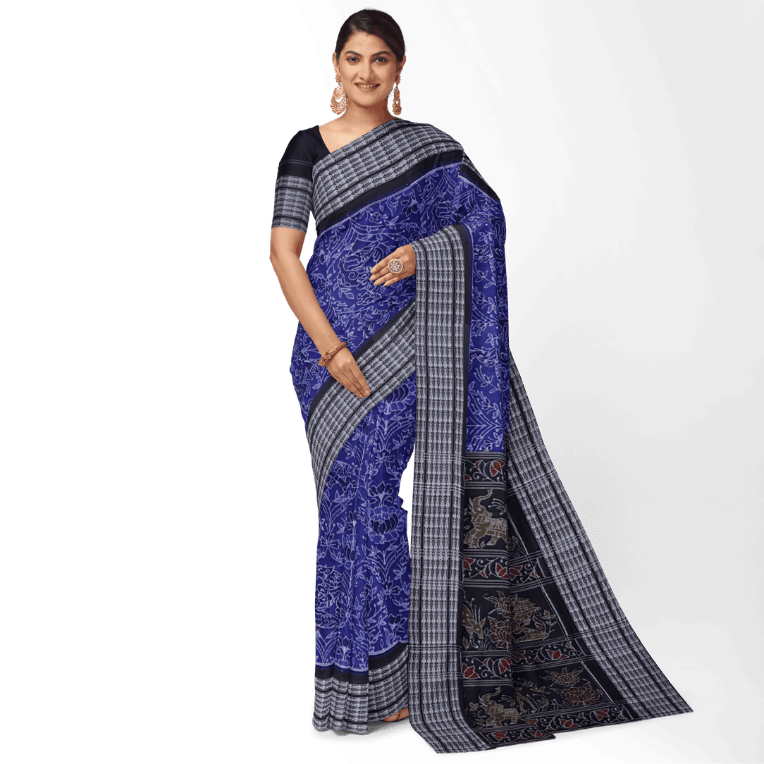 New Floral Design Fish Border Sambalpuri Cotton Saree