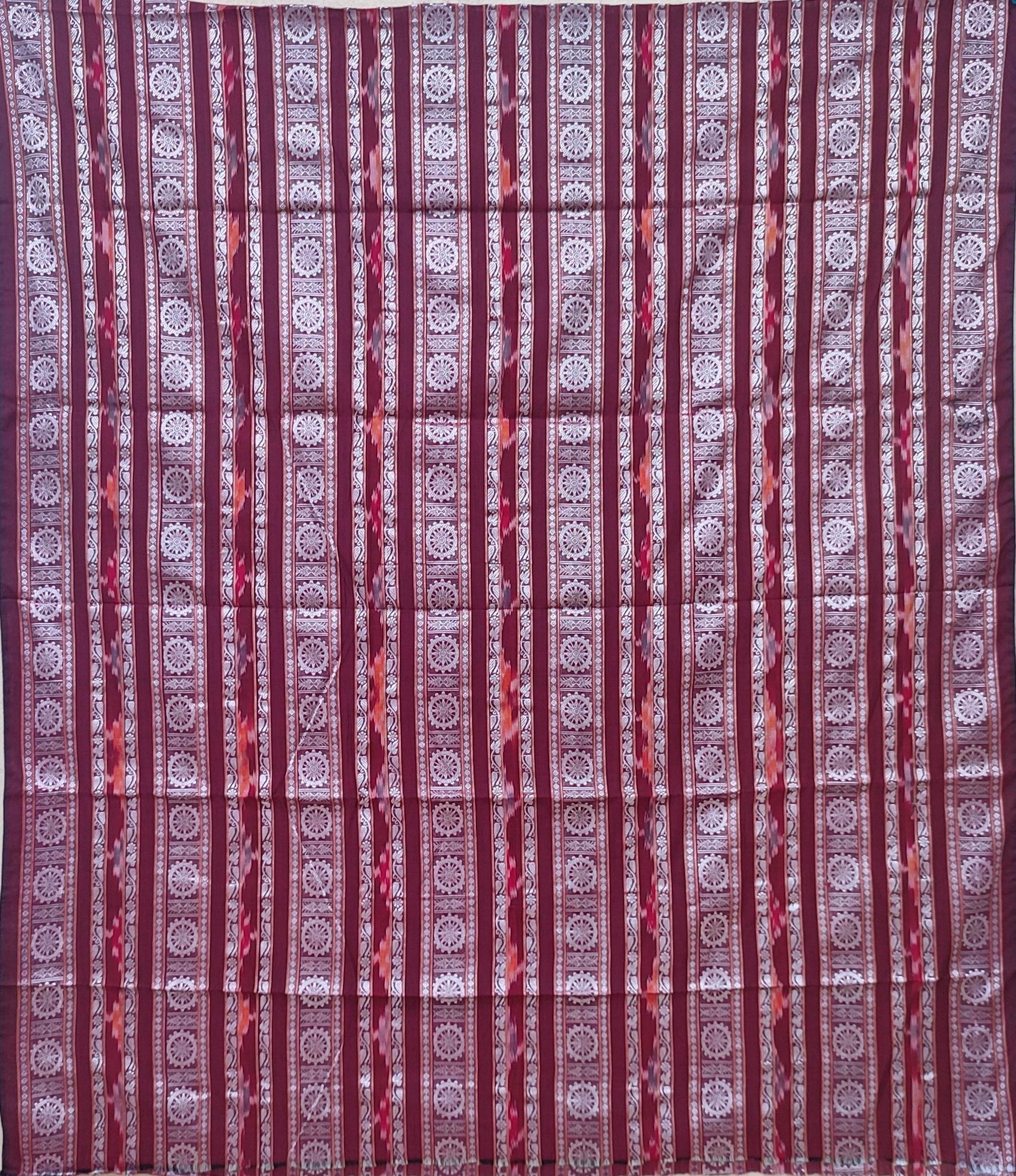 Nuapatana Handwoven Traditional Dress Set Blue thread work in Body Colour With Light Blue Bottom. With Blue White mix bandha design dupatta.