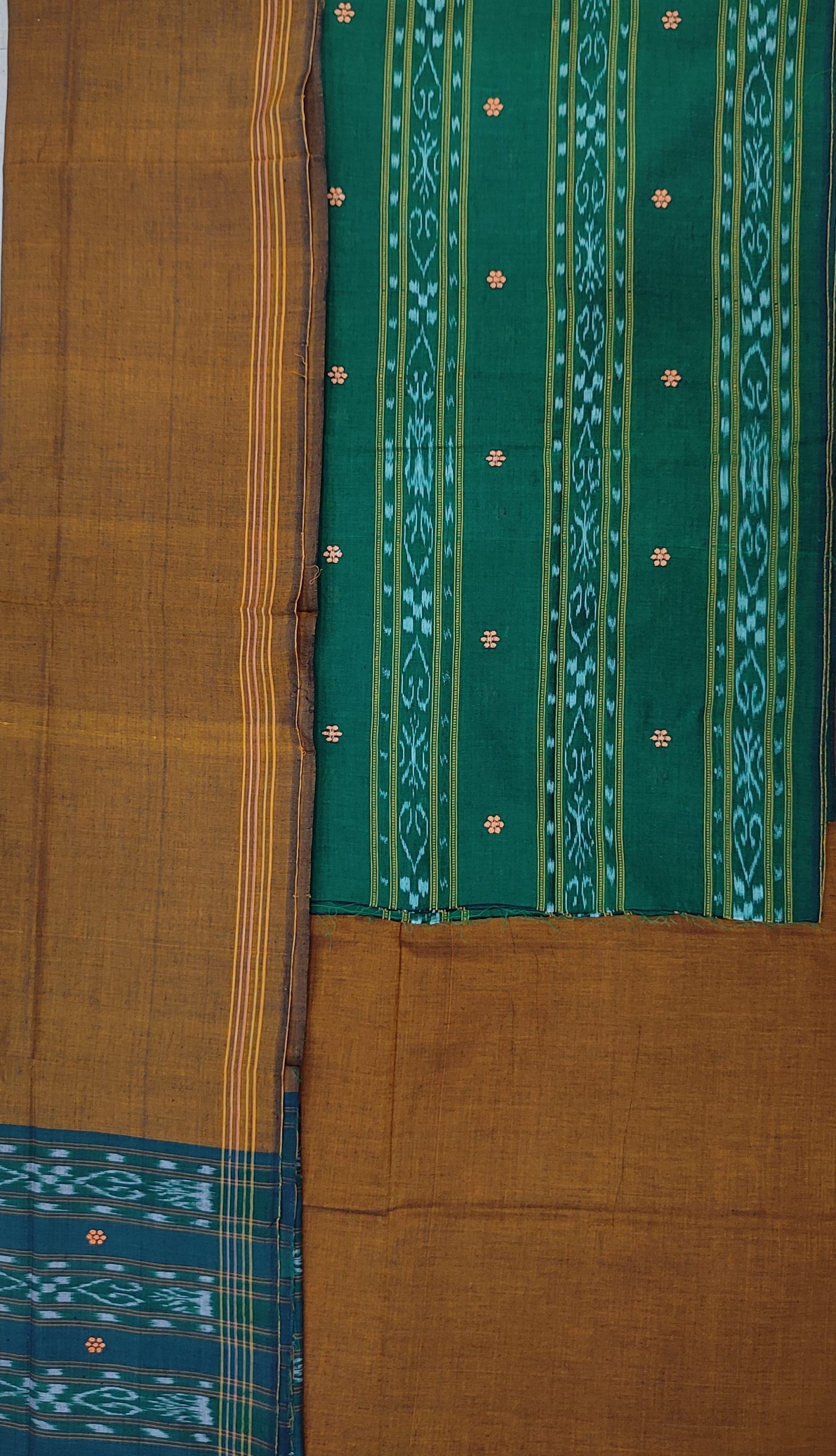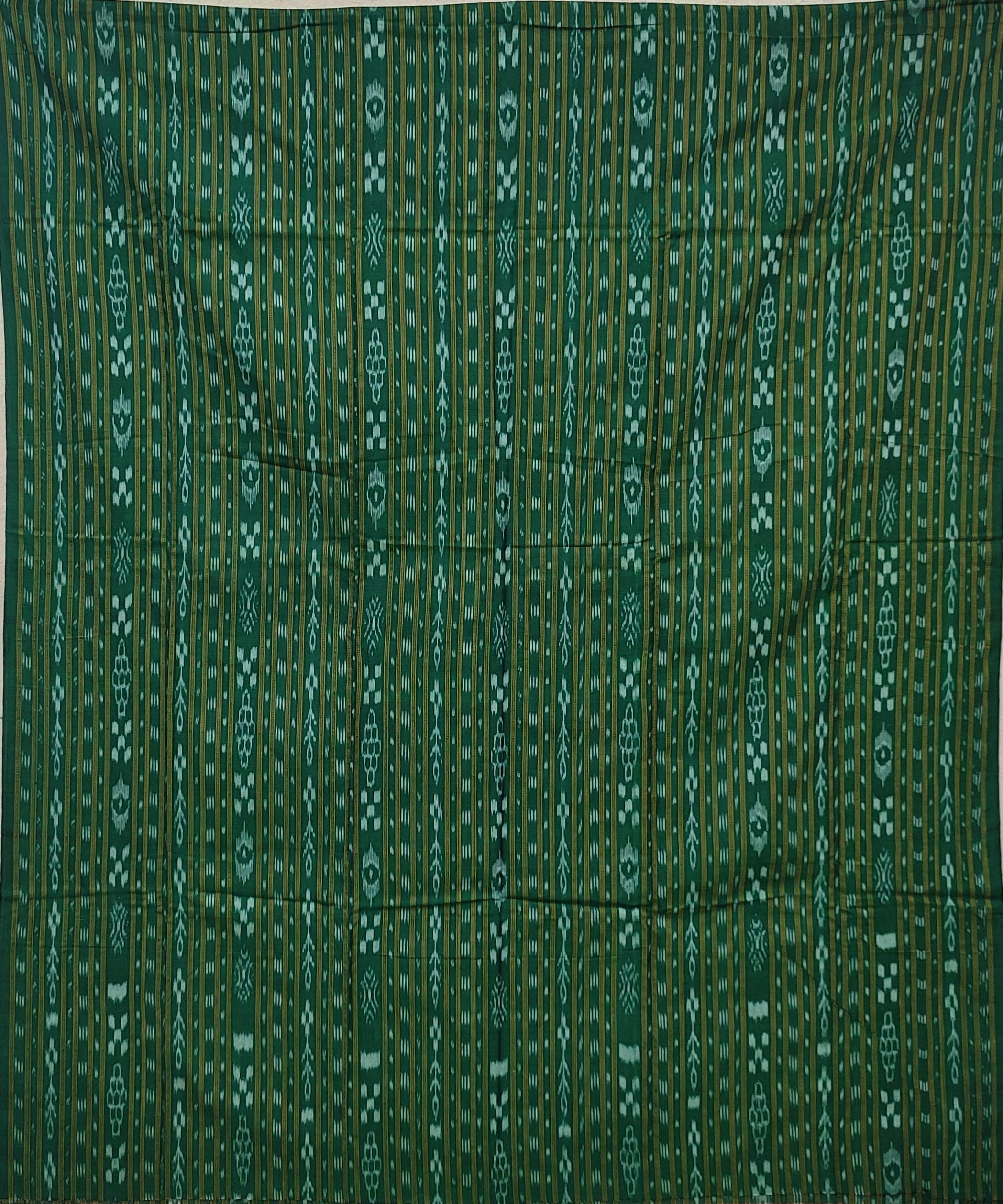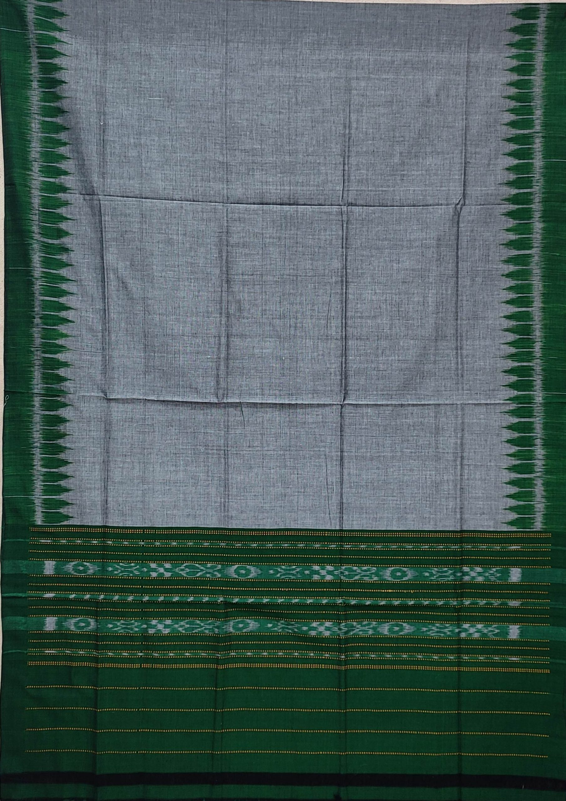 Bomkai Handwoven Traditional Dress Set Green in Body Colour With Grey Bottom. With Grey & Green Border dupatta.