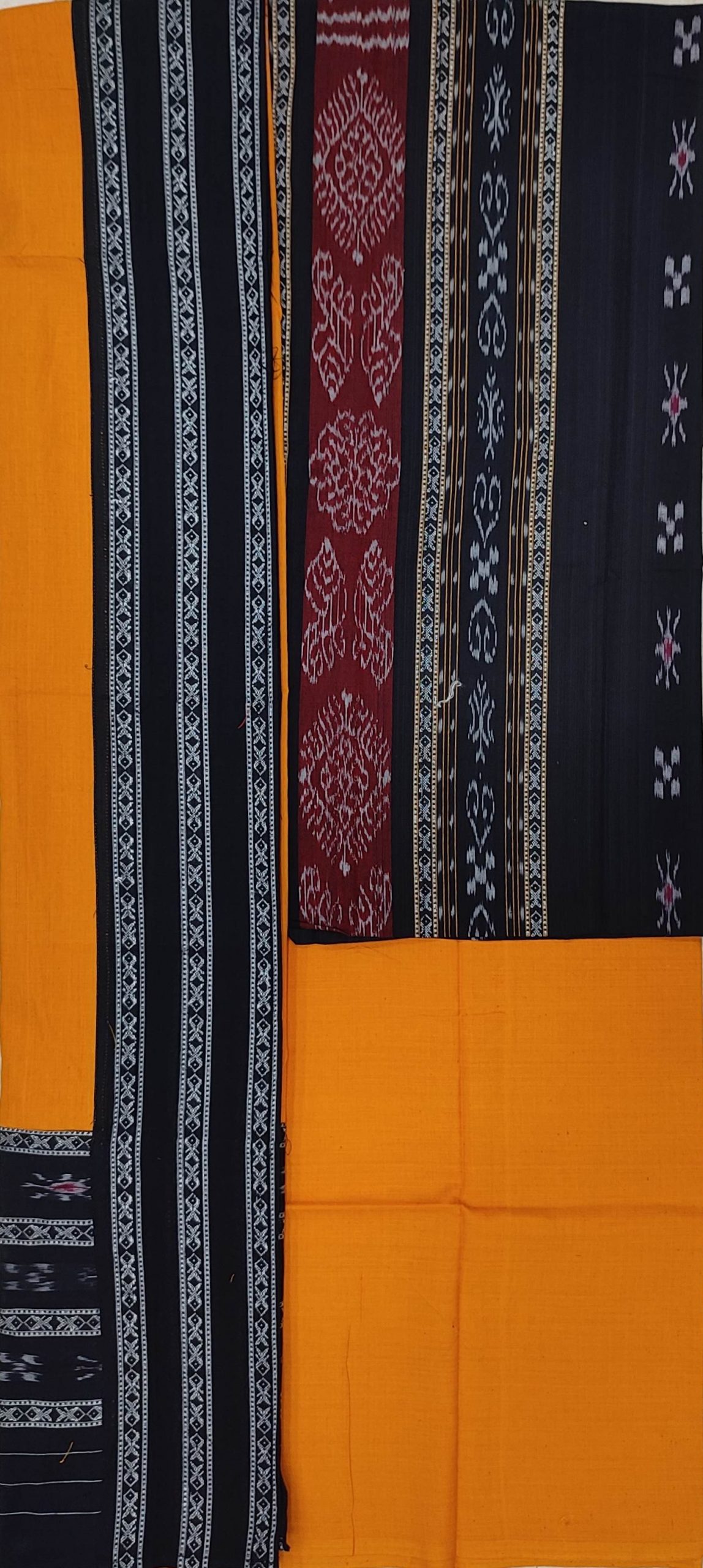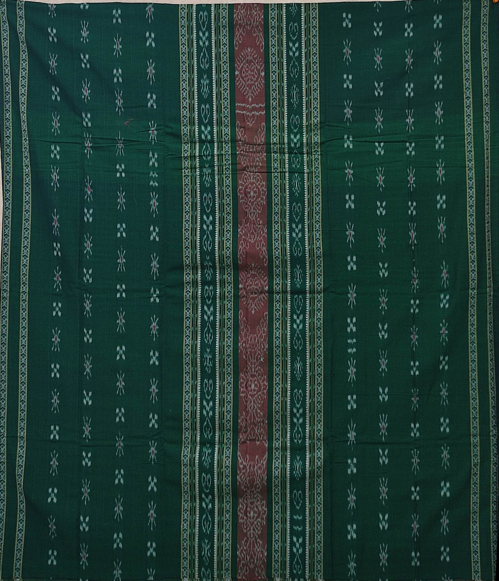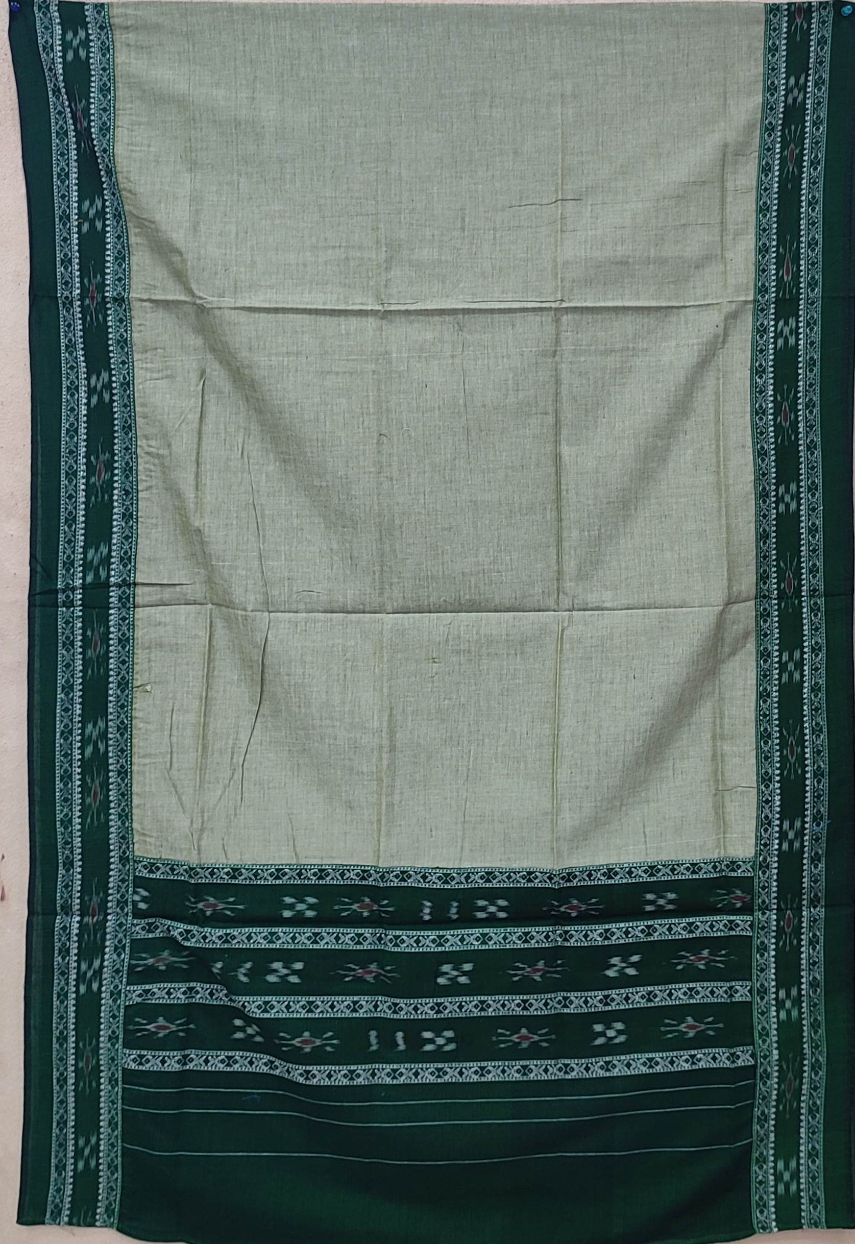 Nuapatna Handwoven Traditional Dress Bottle Green in Body Colour With Grey Bottom. With Bottle Green Grey mix bandha design dupatta.
