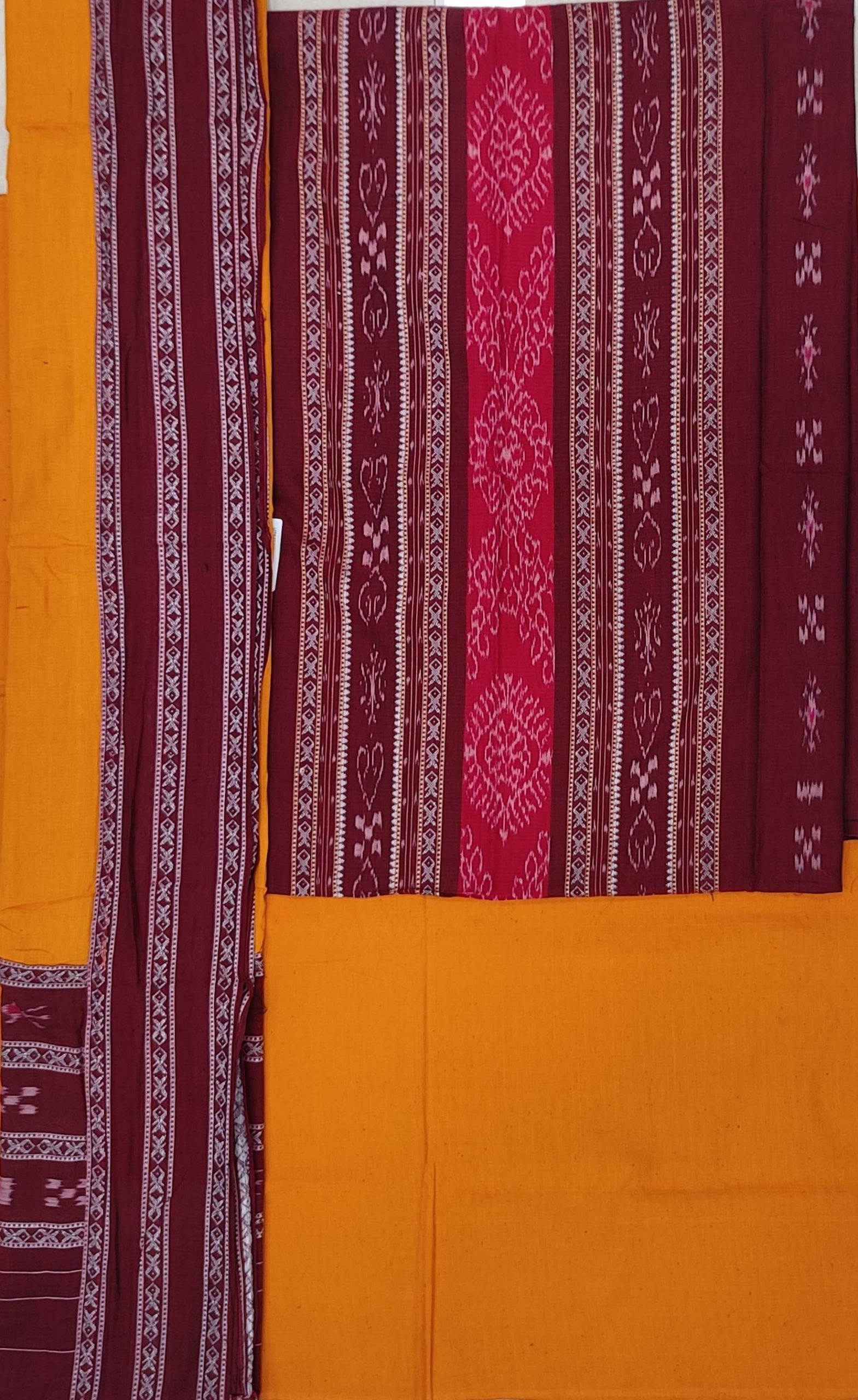 Sambalpuri Handwoven Traditional Dress Set Bottle Green in Body Colour With Grey Bottom. With Bottle Green Grey mix bandha design dupatta.