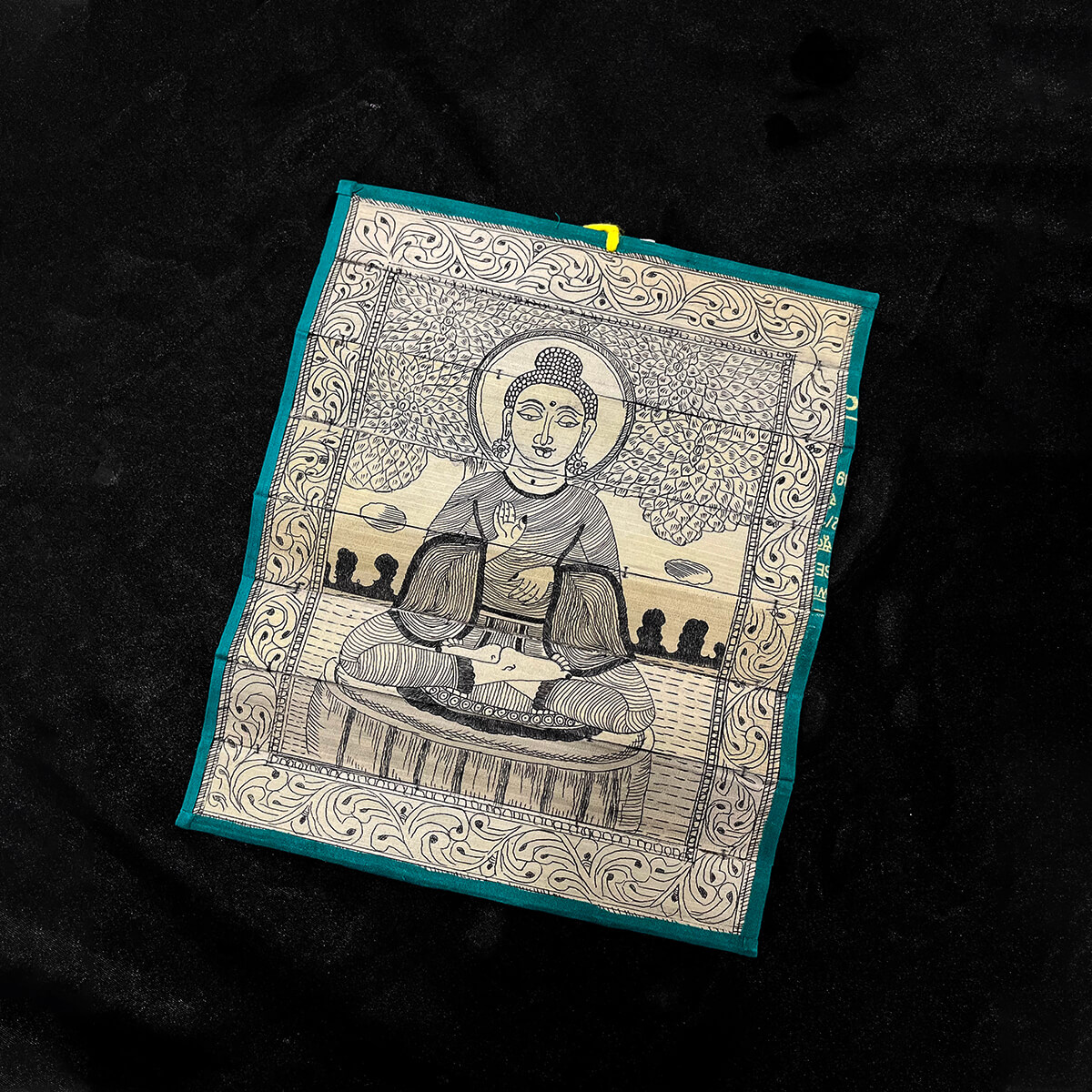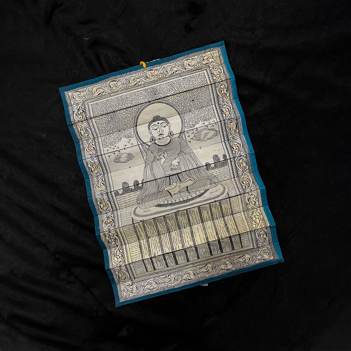 Palm leaf engraving of meditating Buddha