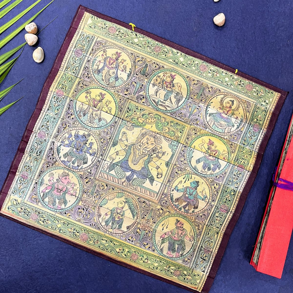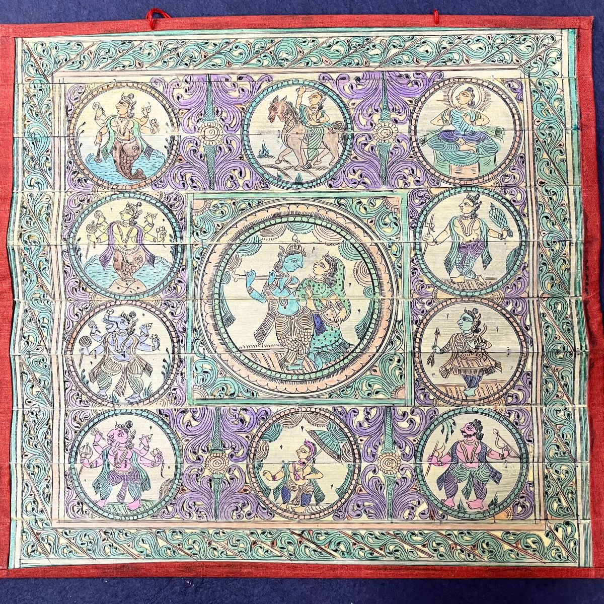 Palm Leaf Engraving of Radha Krishna and Vishnu Dashavatara