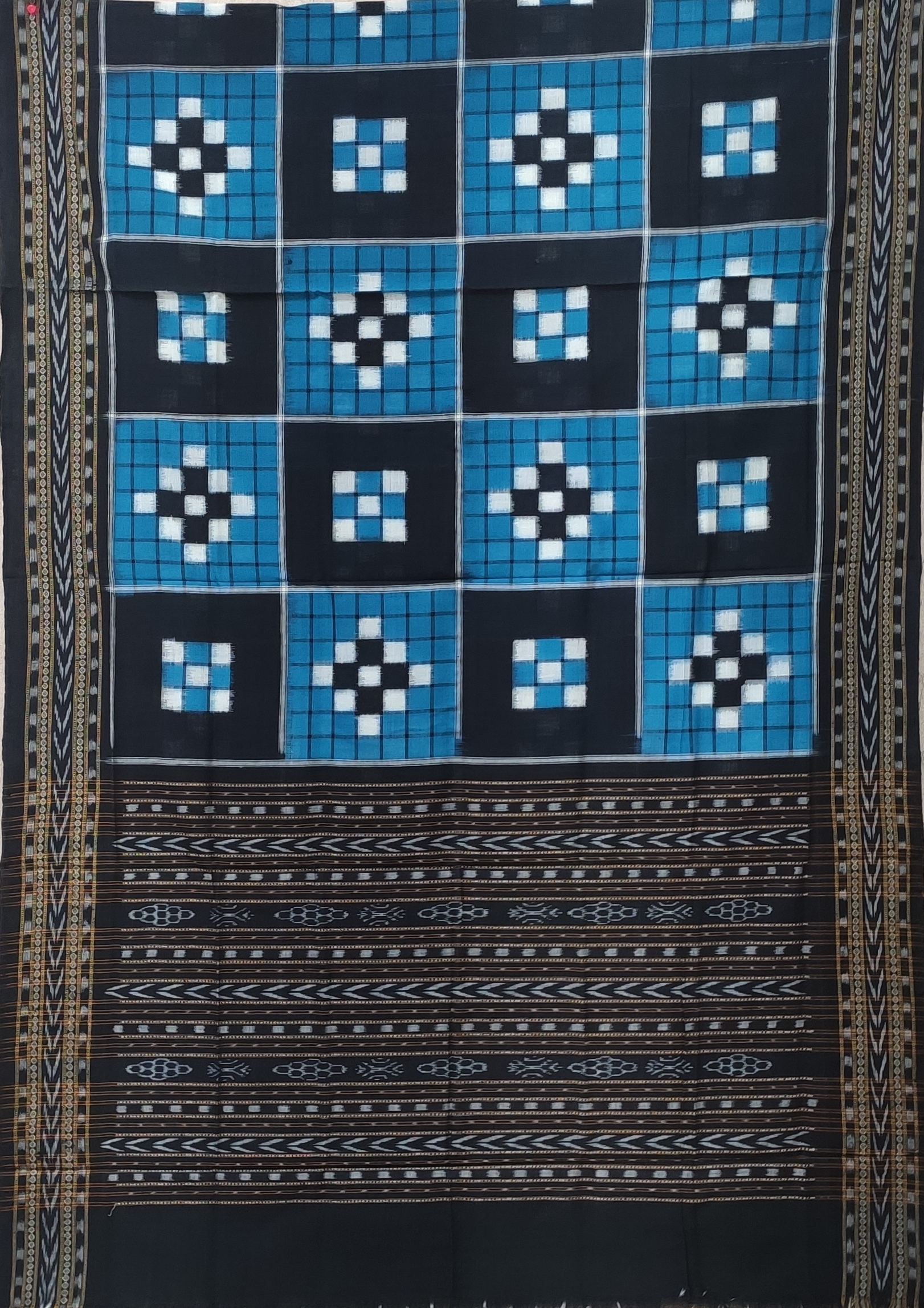 This Sambalpuri Cotton Dupatta Sky Blue & Black in Colour with Pasapalli Design.