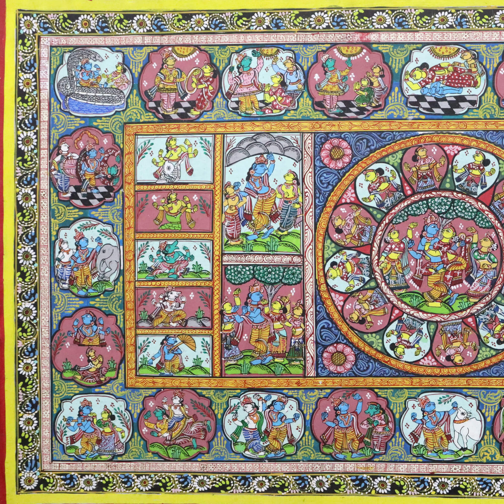 Patta Painting of Krishna Leela and Vishnu Dashavatar