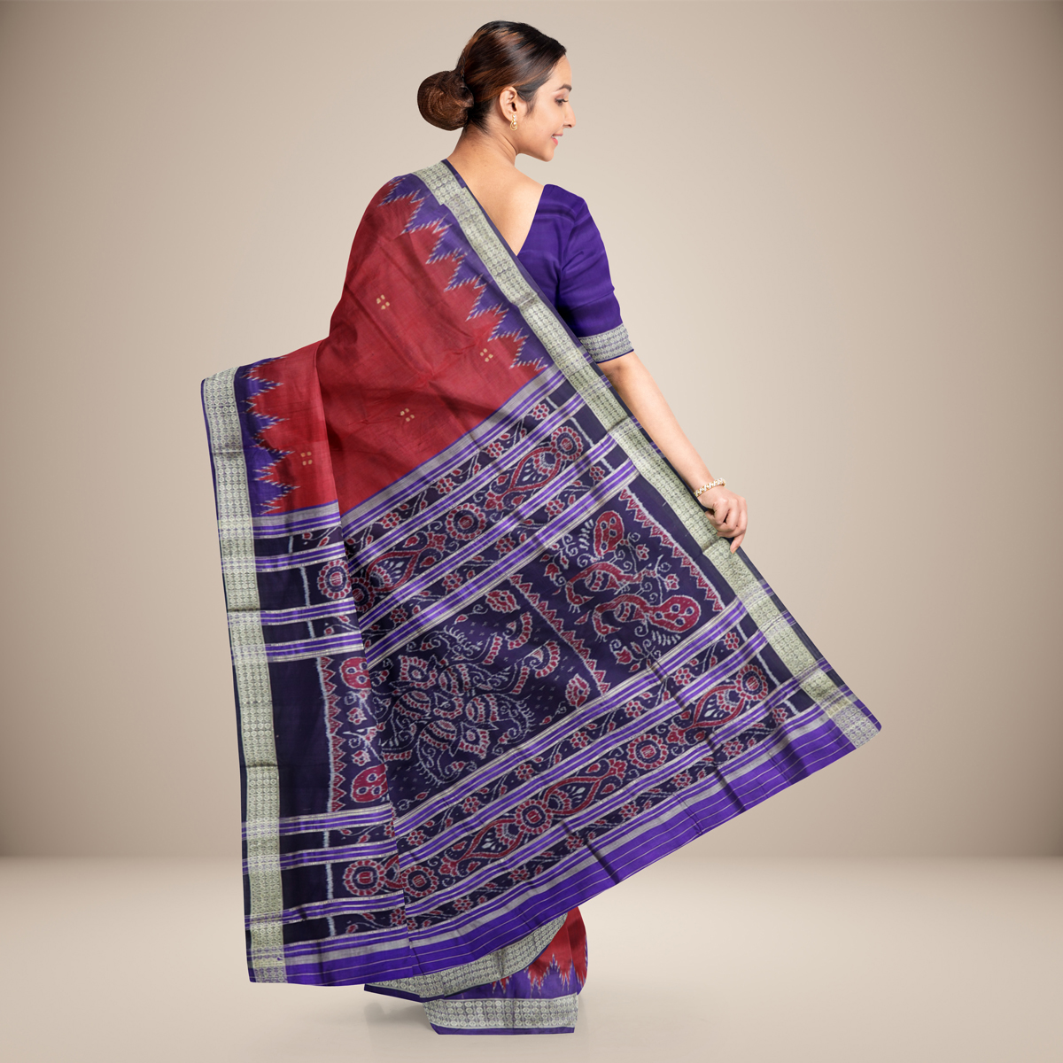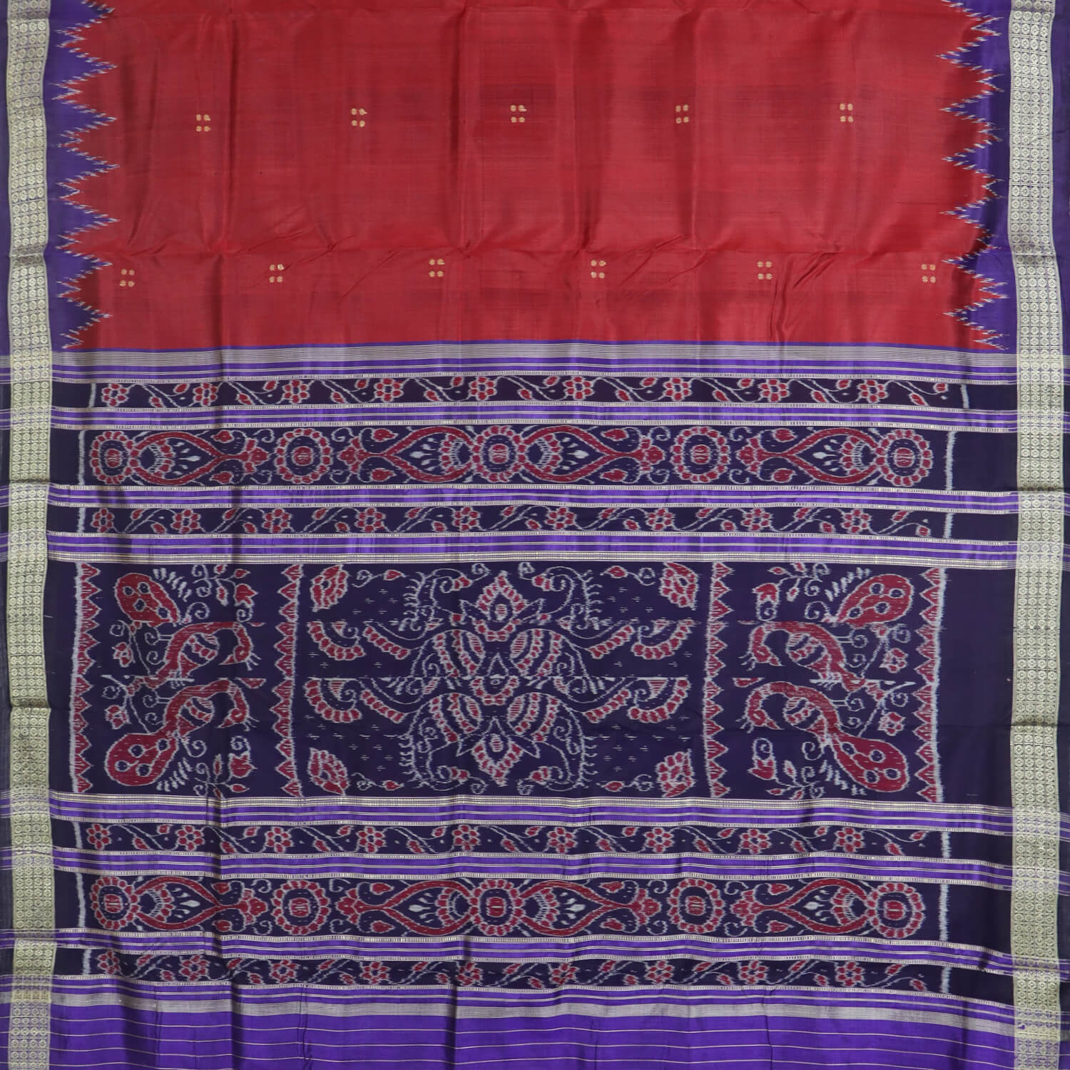 Punji Buti Body With Temple Border Khandua Silk Saree