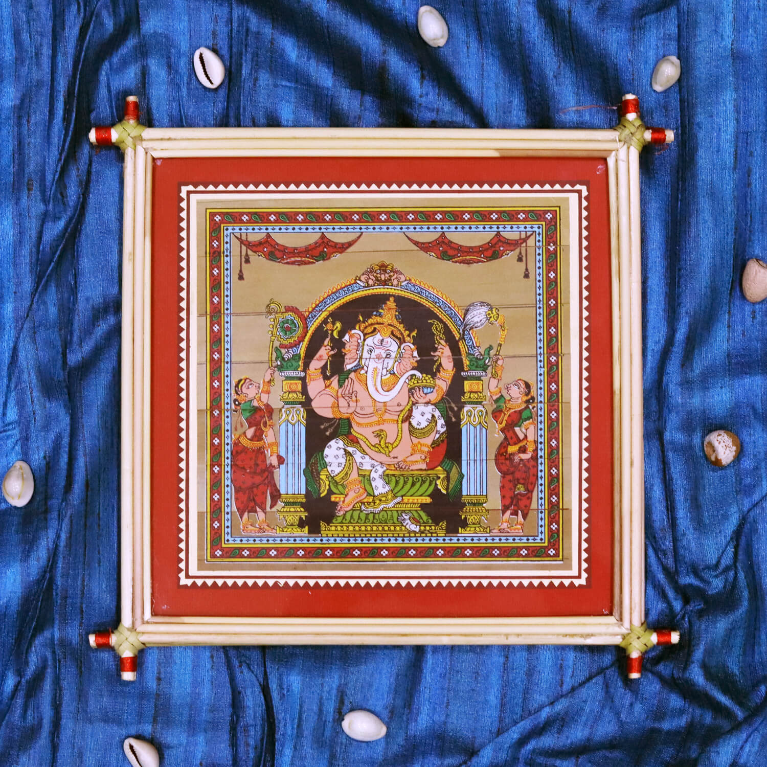- Model: Radha Krishna Rasleela etched In palm leaf and housed in lemon grass frame.