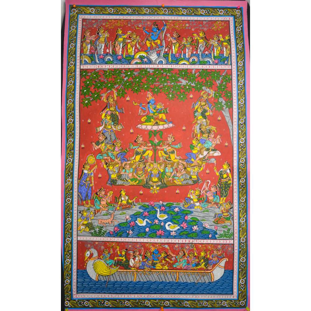 Patachitra artform is known for its intricate details as well as mythological narratives and folktales inscribed in it. Pattachitra is one of the ancient artworks of Odisha, originally created for ritual use and as souvenirs for pilgrims to Puri, as well as other temples in Odisha.