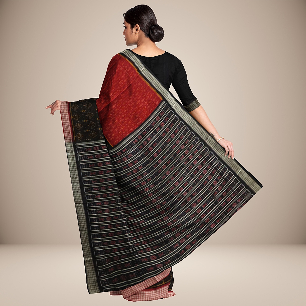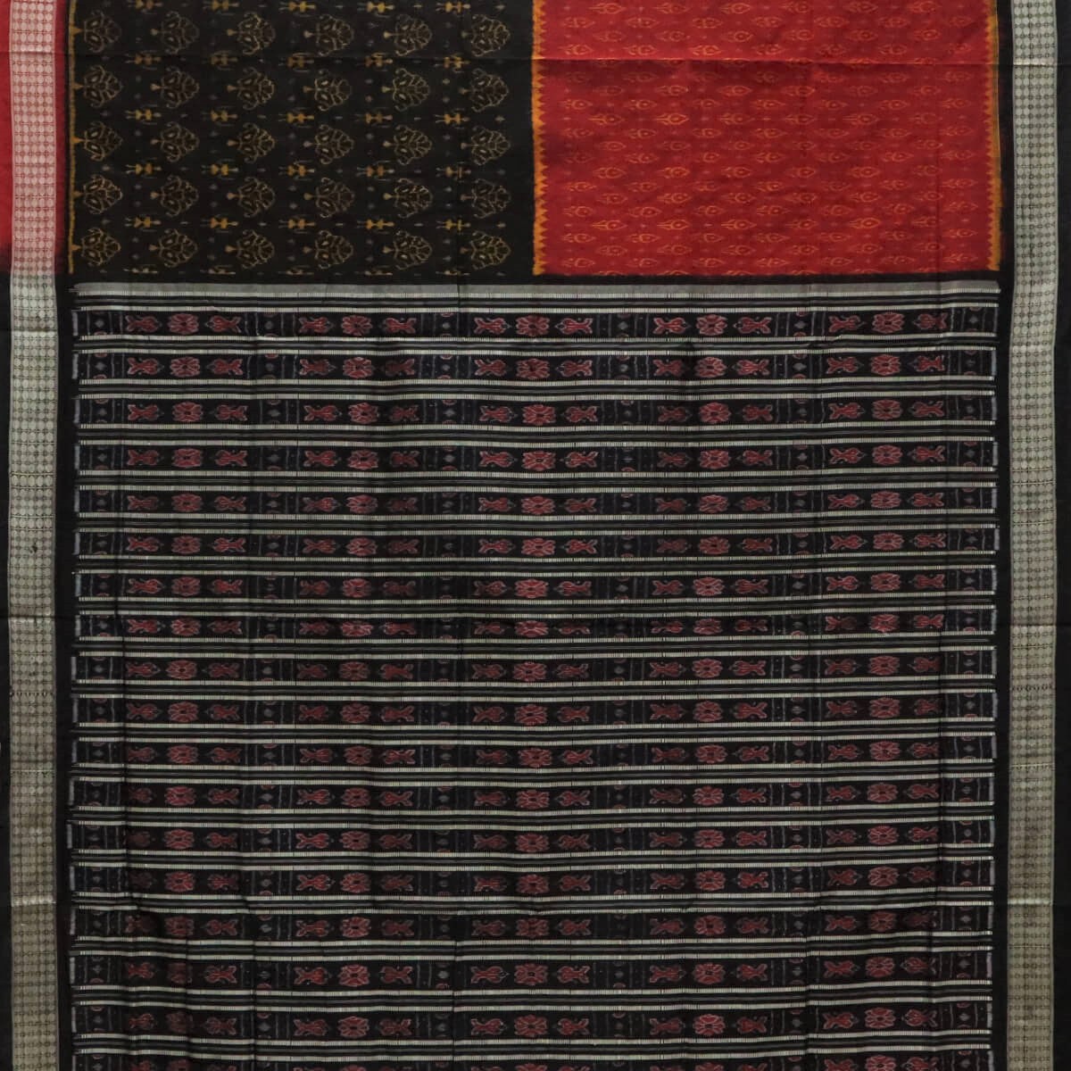 Red and black dual body sambalpuri silk saree