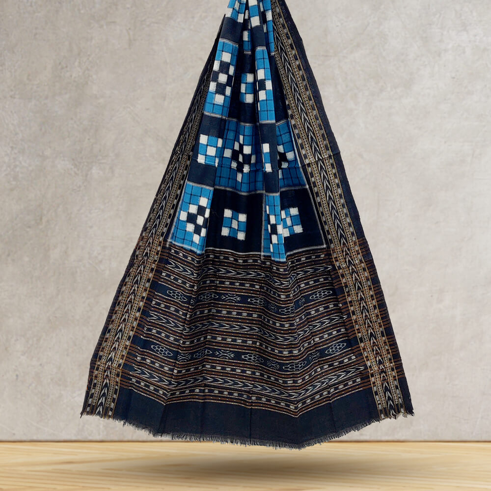 This Sambalpuri Cotton Dupatta White, Black & Marron in Colour with Kathi Kumbha Design.