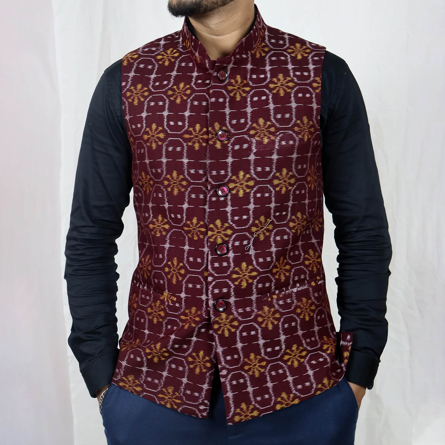 Handwoven traditional Sambalpuri Cotton Nehru Jacket.