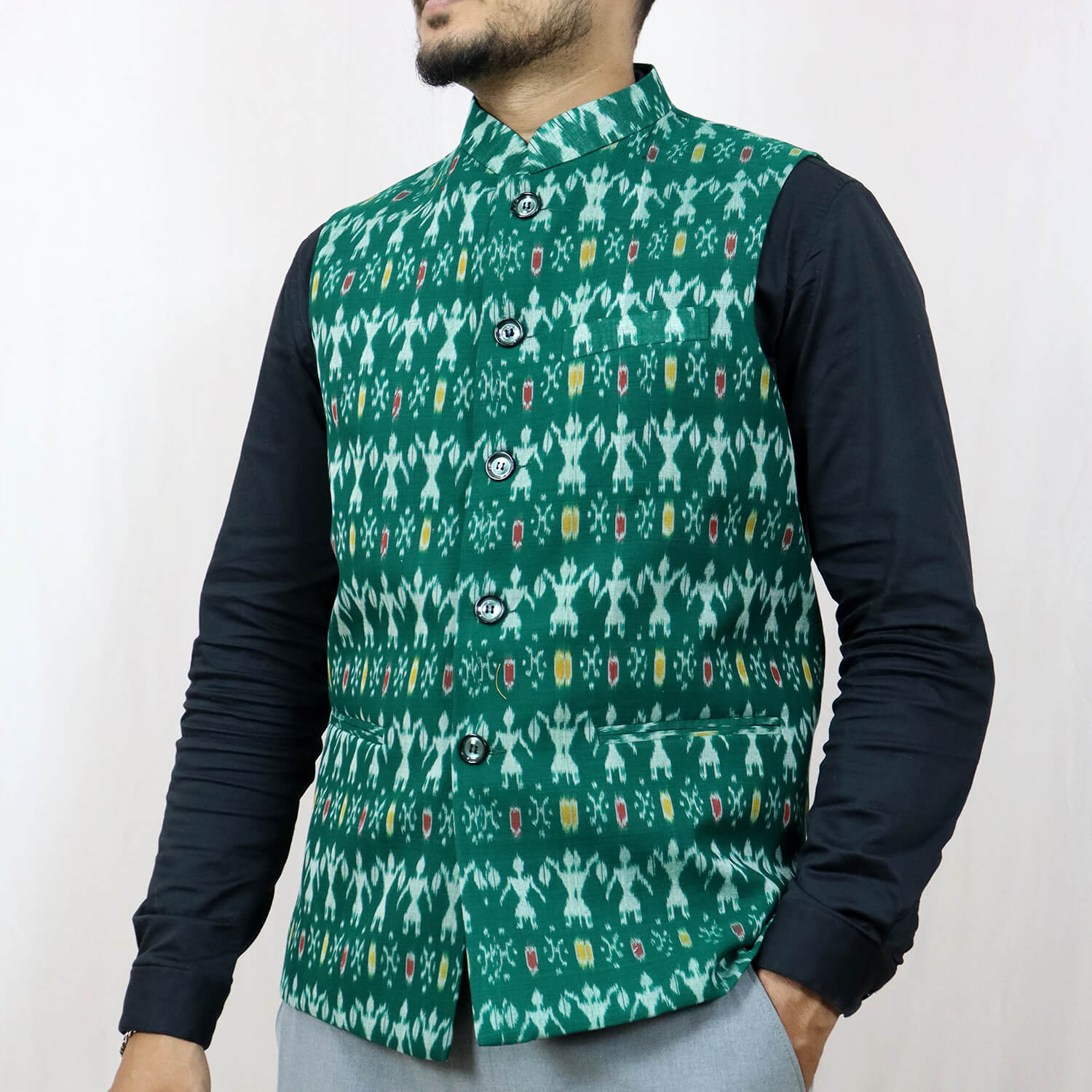 Handwoven Sambalpuri Cotton Nehru Jacket