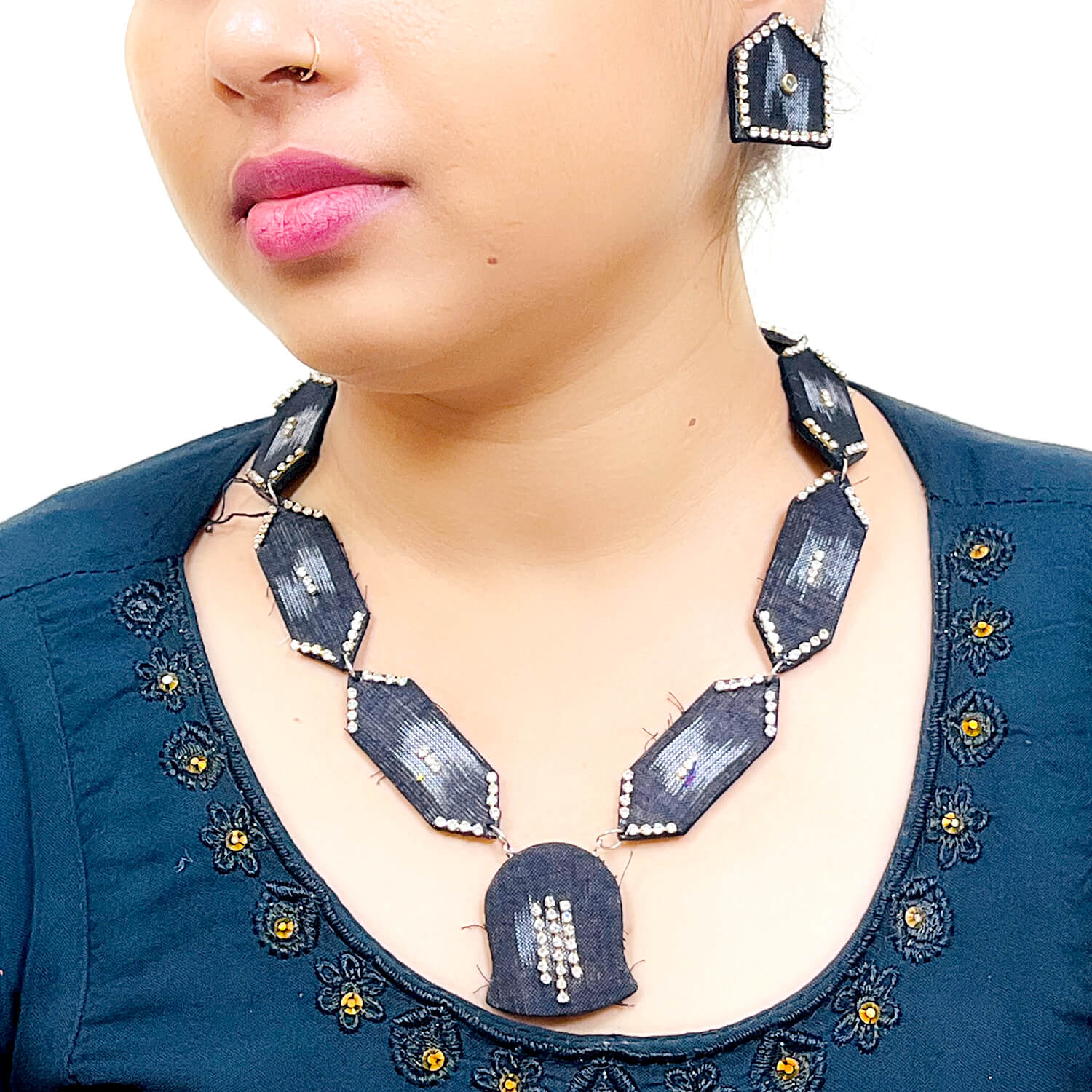 Sambalpuri Fabric Necklace & Earrings Set