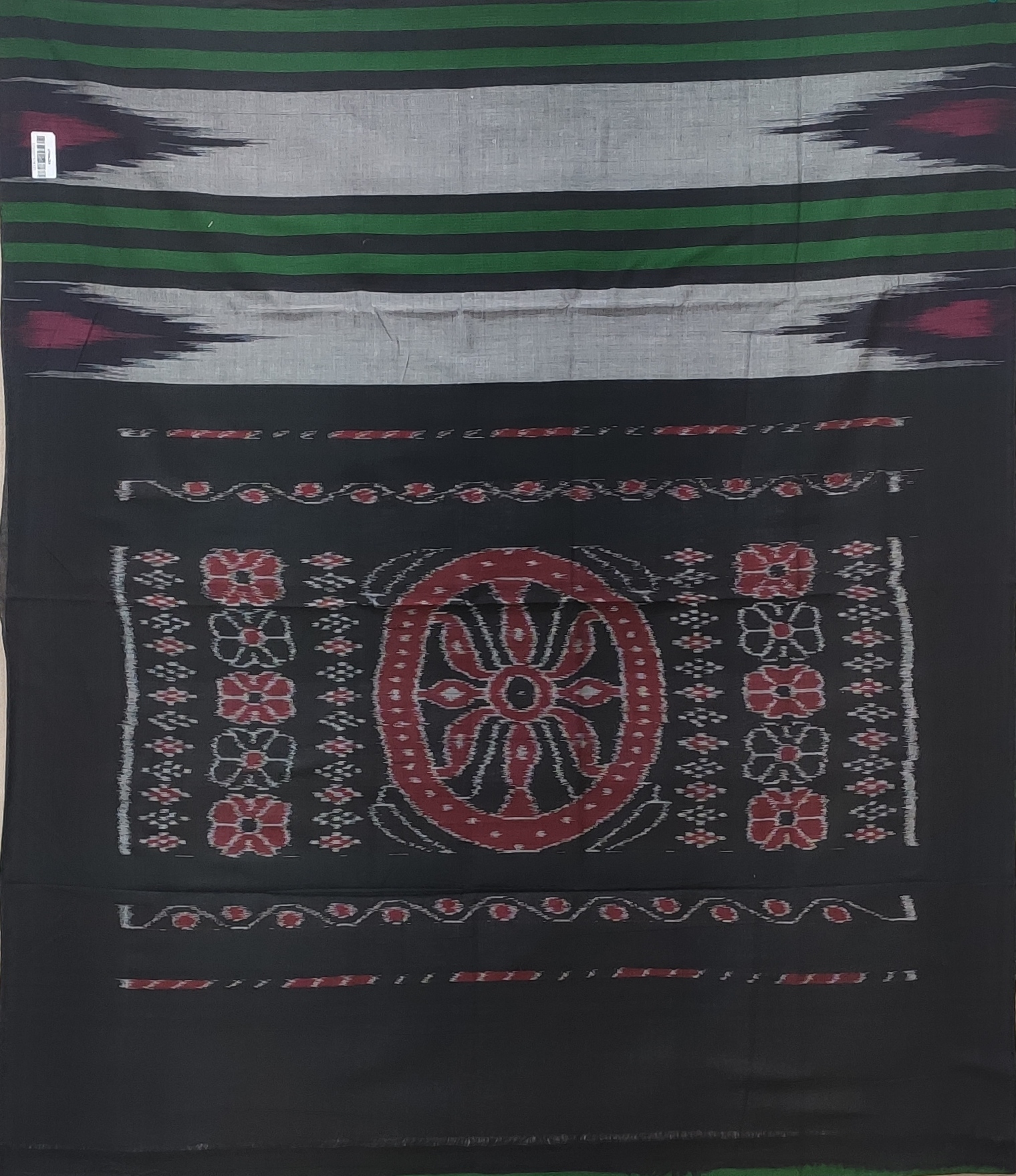 Sambalpuri Handwoven Traditional Dress Set Black, Red & White in Body Colour With Red Bottom. With Red Black mix bandha design dupatta.